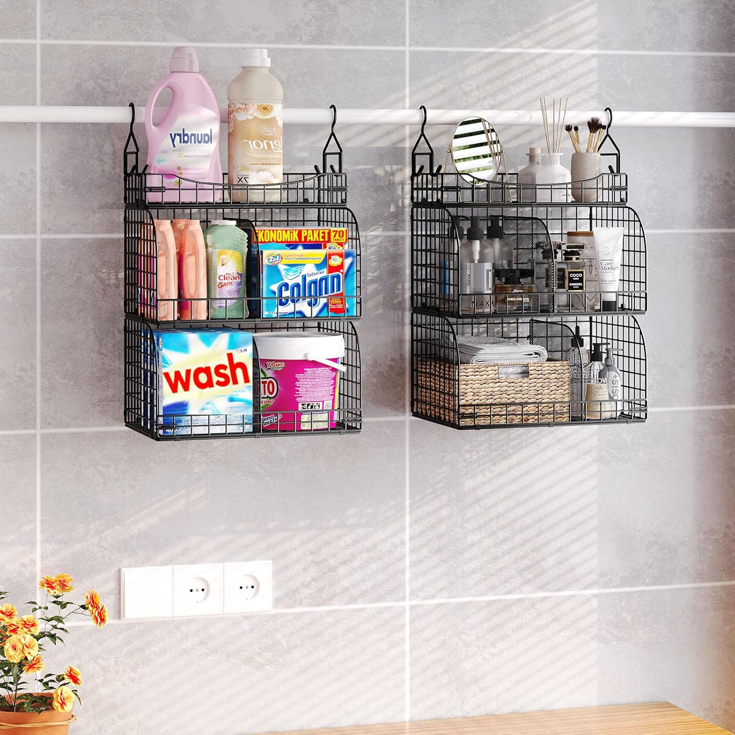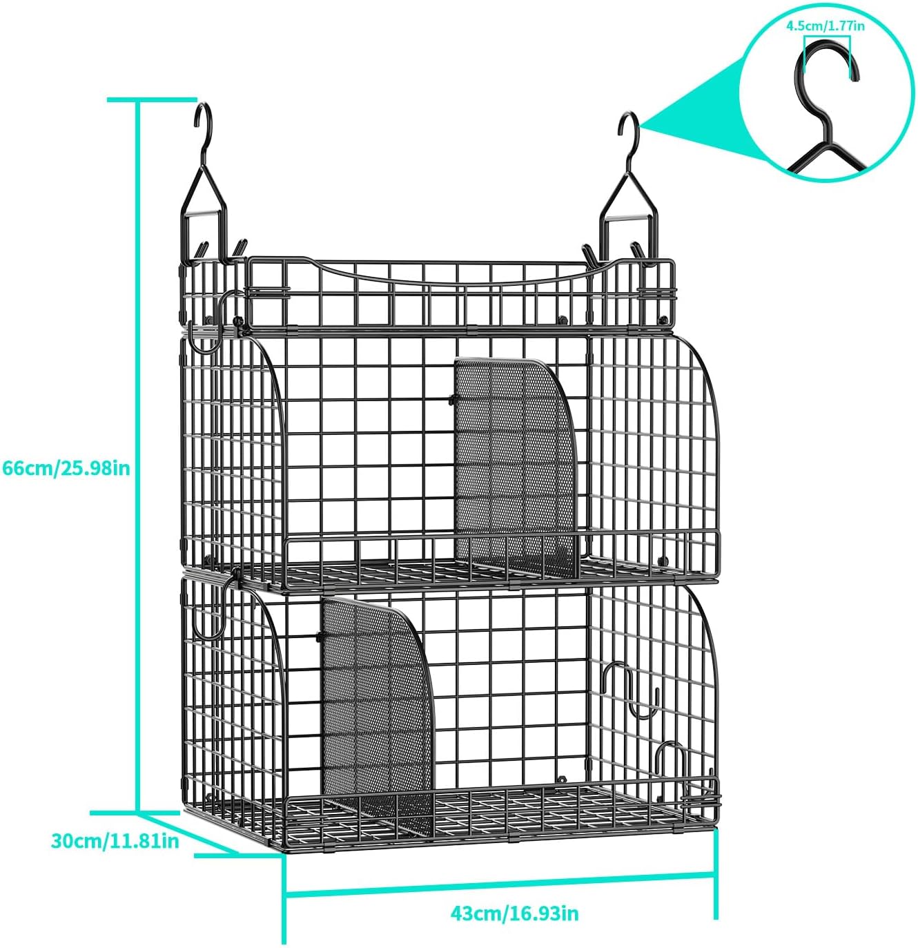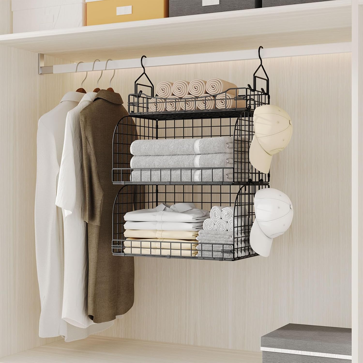 - [Open Metal Wire Basket for Easy Access]: The open design of these hanging shelves for closet makes it easy to view and grab your items quickly, improving convenience and efficiency in daily use