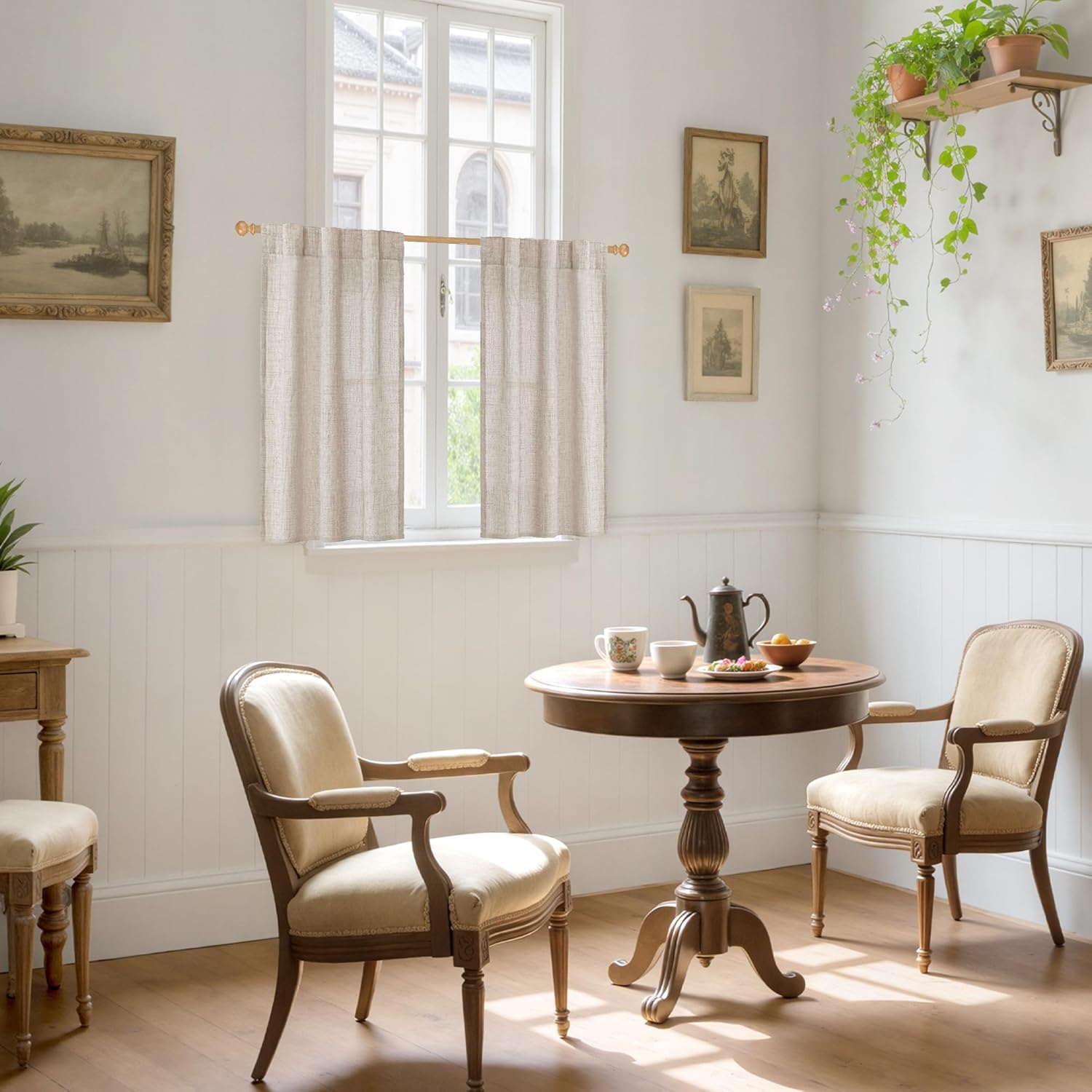 YoungsTex Cafe Linen Curtains 40 Inches Long for Kitchen Window Over Sink - Short Semi Sheer Drapes with Rod Pocket Back Tab Rustic Light Filtering for Front Door Bathroom, 2 Panels, 30 X 40 Inch