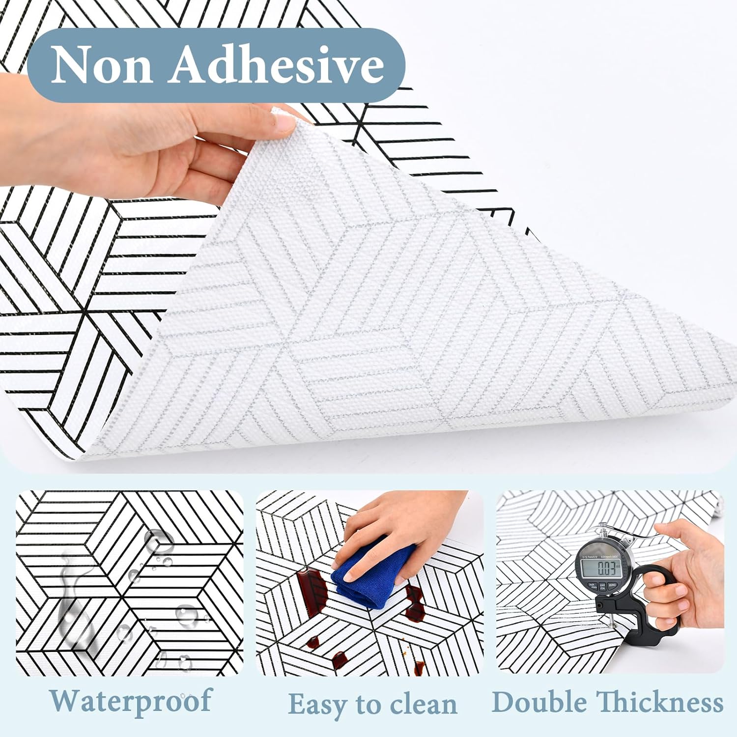 Shelf Liners for Kitchen Cabinets Non Adhesive Shelf Liner Paper Non-Slip Thickened Drawer Liner Easy to Clean for Tool Box Refrigerator with Knife and Tape Measure, Black Geometric, 17.3 x 236.2 in