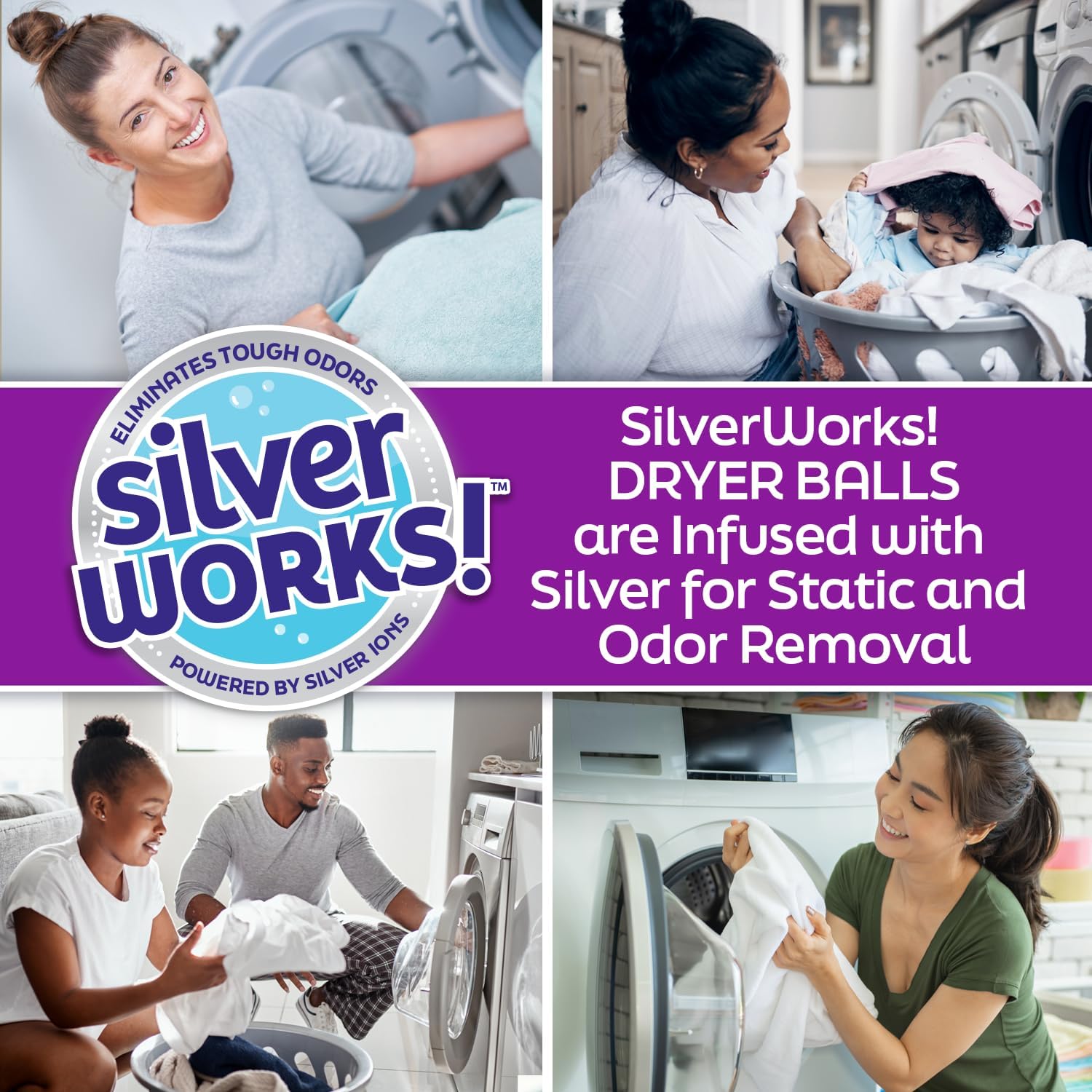 - NATURAL ODOR ELIMINATING DRYER BALLS: Infused with over 180 ft of Silver for maximum odor elimination. We use science, not chemicals, because... SilverWorks!