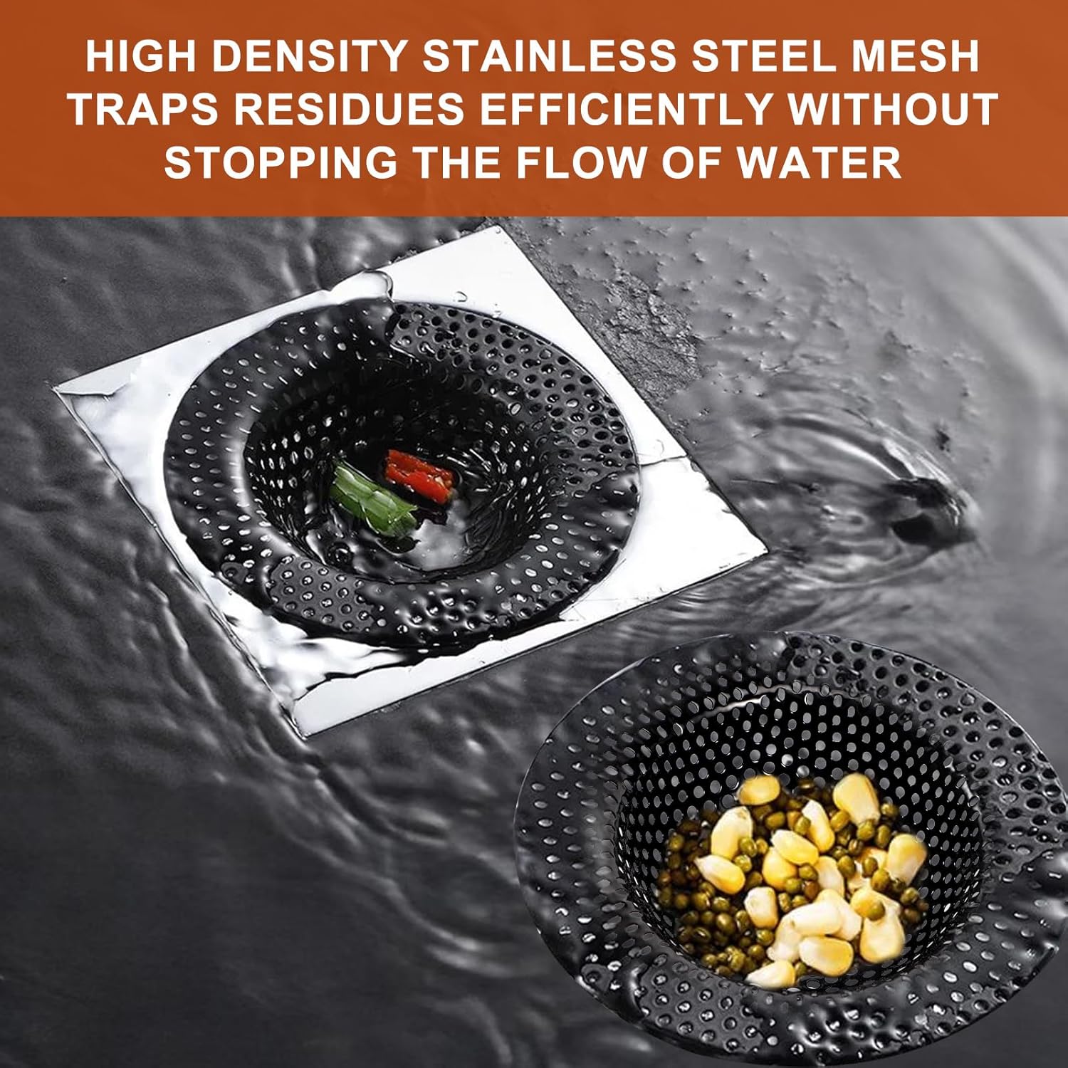 2 Pcs Black Stainless Steel Mesh Sink Drain Strainer, 4.45" Top/2.95" Kitchen Filter Trap Basket,Large Food Catch for Bathroom Bathtub Wash basin Floor drain balcony RV Drain Hole Electroplated Coatin