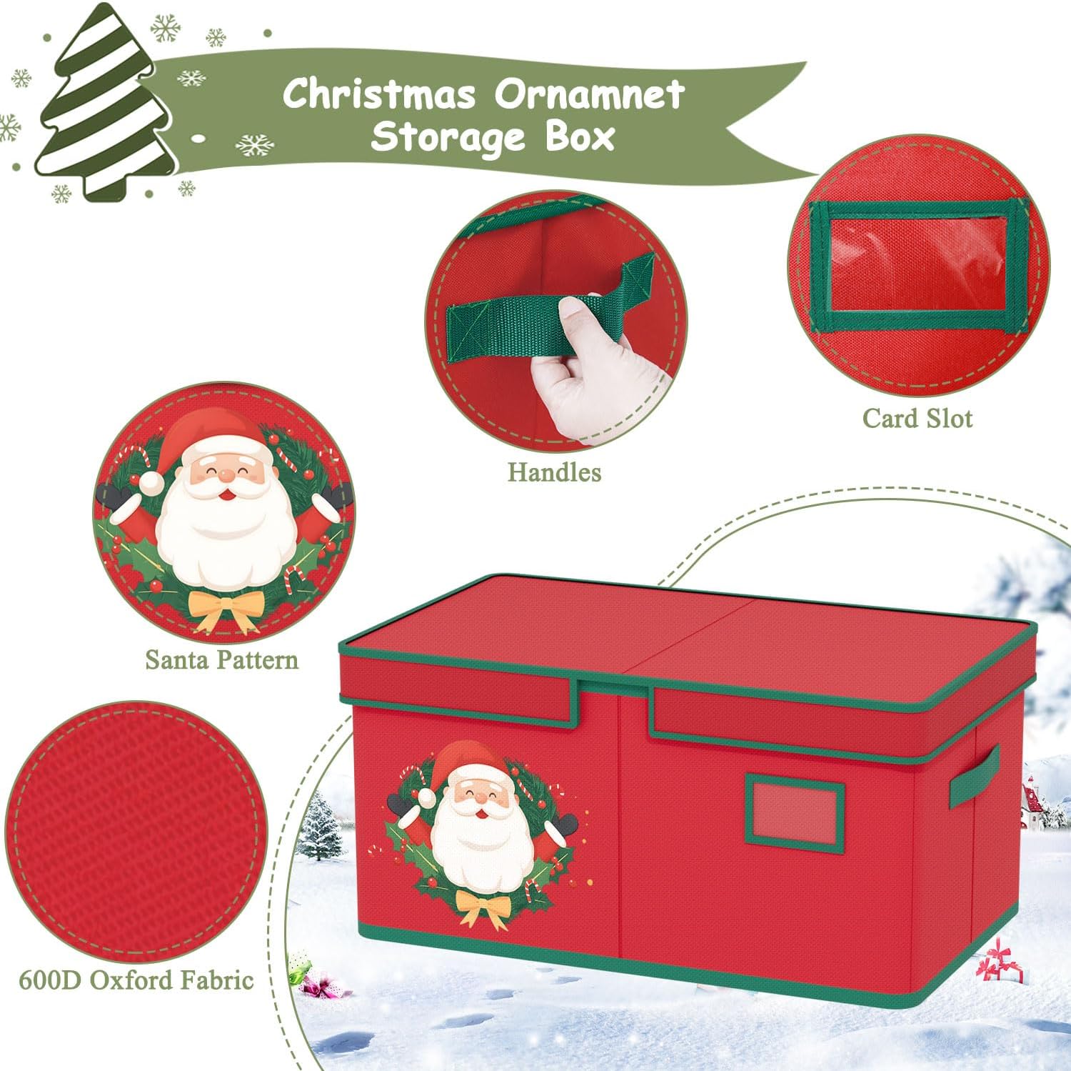 - Creative Design - Ornament Storage Box: Adjustable dividers design is convenient for you to store larger ornament, you can freely adjust the dividers according to the size of the christmas ornament. Besides, cute Santa pattern adds a touch of Christmas for your home.