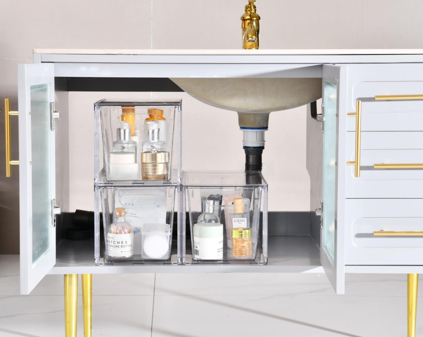 - MULTI-USE ORGANIZER - You can use these bins for various things throughout your home to organize and make your life easier. You can use these clear storage drawers for organizing snacks,drinks,facial maskscosmetics,makeup,medicine,baby bottles and other daily items in pantry,cabinets, bathroom closet,bathroom undersink,say goodbye to clutter in every room of your home