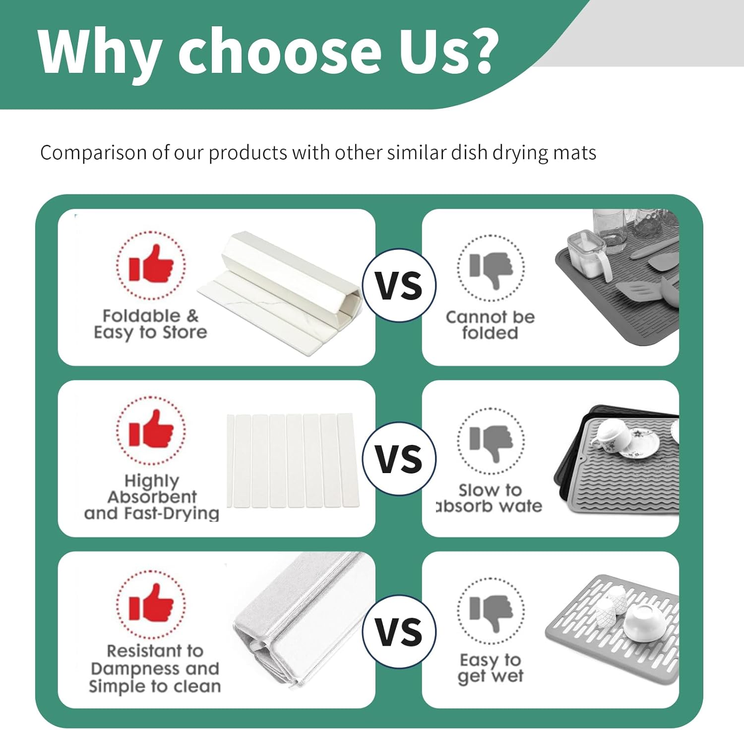 - 【Multi functionality】The self drying mat for kitchen counter is not only suitable for washed tableware, fruits and vegetables, but it can also be used as a thermal insulation mat, bath mat, plant tray, etc.Kitchen drying mat is an essential household product in your family life!