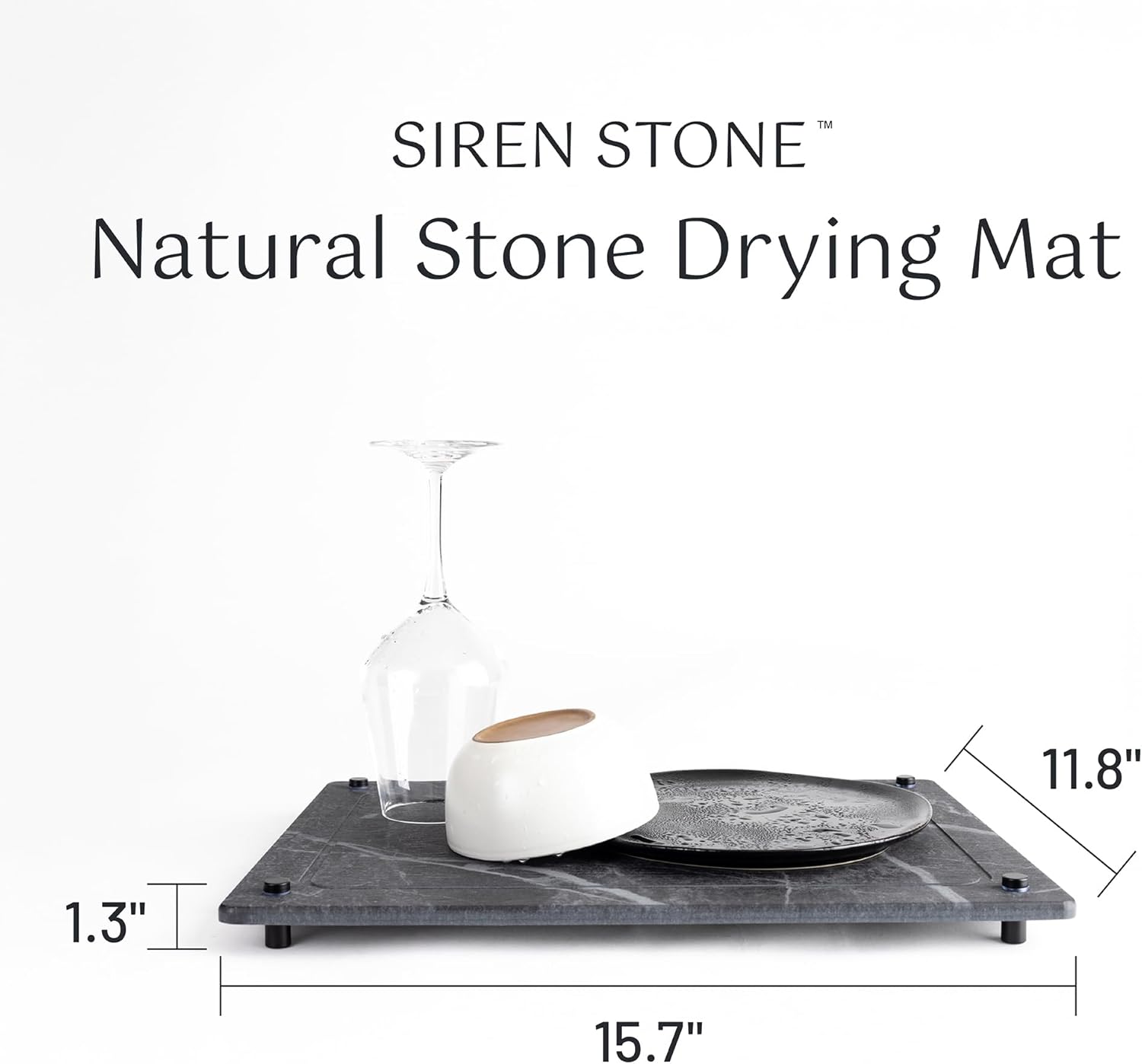 - PREMIUM COMPACT STONE DRYING MAT: The Siren Stone drying mat measures 15.7" x 11.8" x 1.5", perfect for smaller countertops and apartments. Crafted from diatomaceous earth and recycled paper with elegant stainless steel legs, this sophisticated slate kitchen essential transforms your kitchen counter into a thoughtfully curated space.