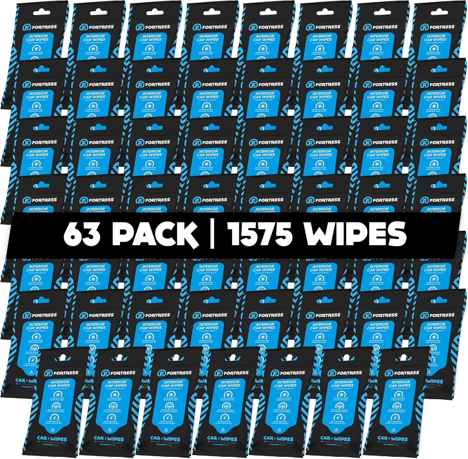 Fortress Car Interior Wipes (25 ct, Pack of 63) for Car Interior Cleaning, Dashboard, Seats, Detailing, and Steering Wheel [Travel Size] Skin-Safe Car Interior Cleaner Supplies