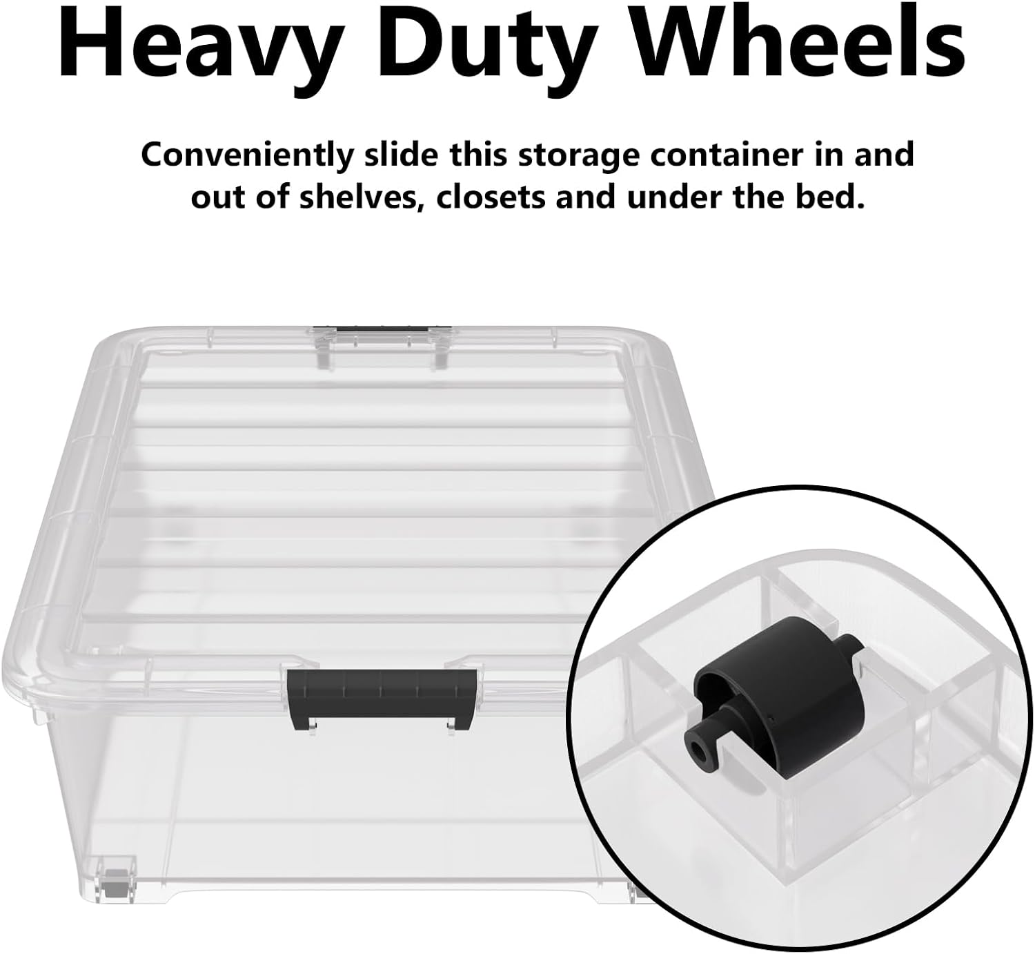 50 Quart Multipurpose Under Bed Storage Container Bins with Secure Latch Lid & Wheels, Underbed Storage Organizer Box, 3-Pack, Clear