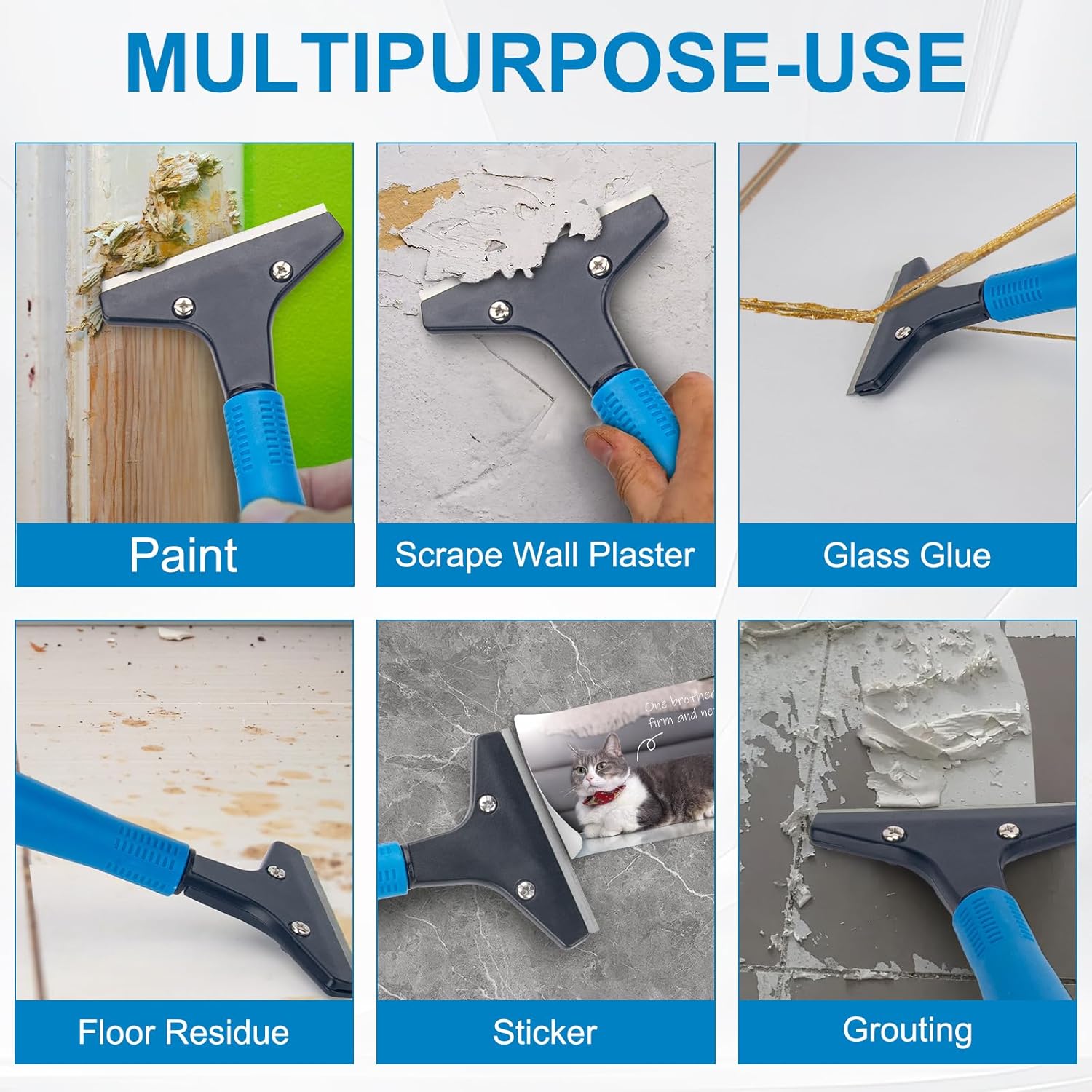- ๐This long handle scraper is ideal for removing wallpaper, cleaning floors, glass and tile. Ideal for tough jobs on floors, walls and ceilings, such as cleaning tiles, wallpaper, floors, painted floor chips, wall tape, peeling paint, bathroom glass stickers and more