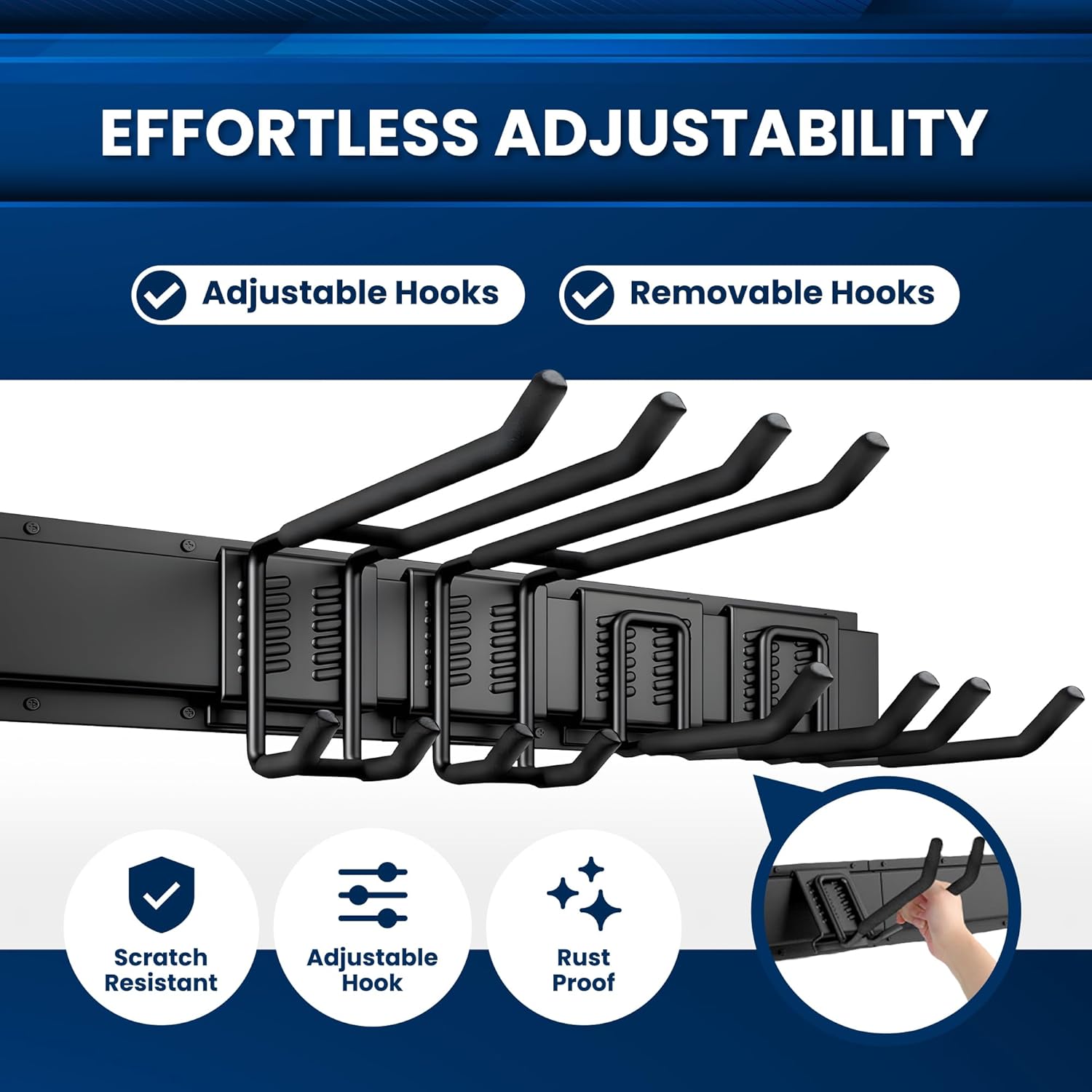 Garage Storage, Garage Organization, Garage Tool Organizer Wall Mount, Garden Tool Organization and Storage 32.1 Inches, Max 300lbs Adjustable Metal Hooks, Hangers Garden Yard Tool Rack,