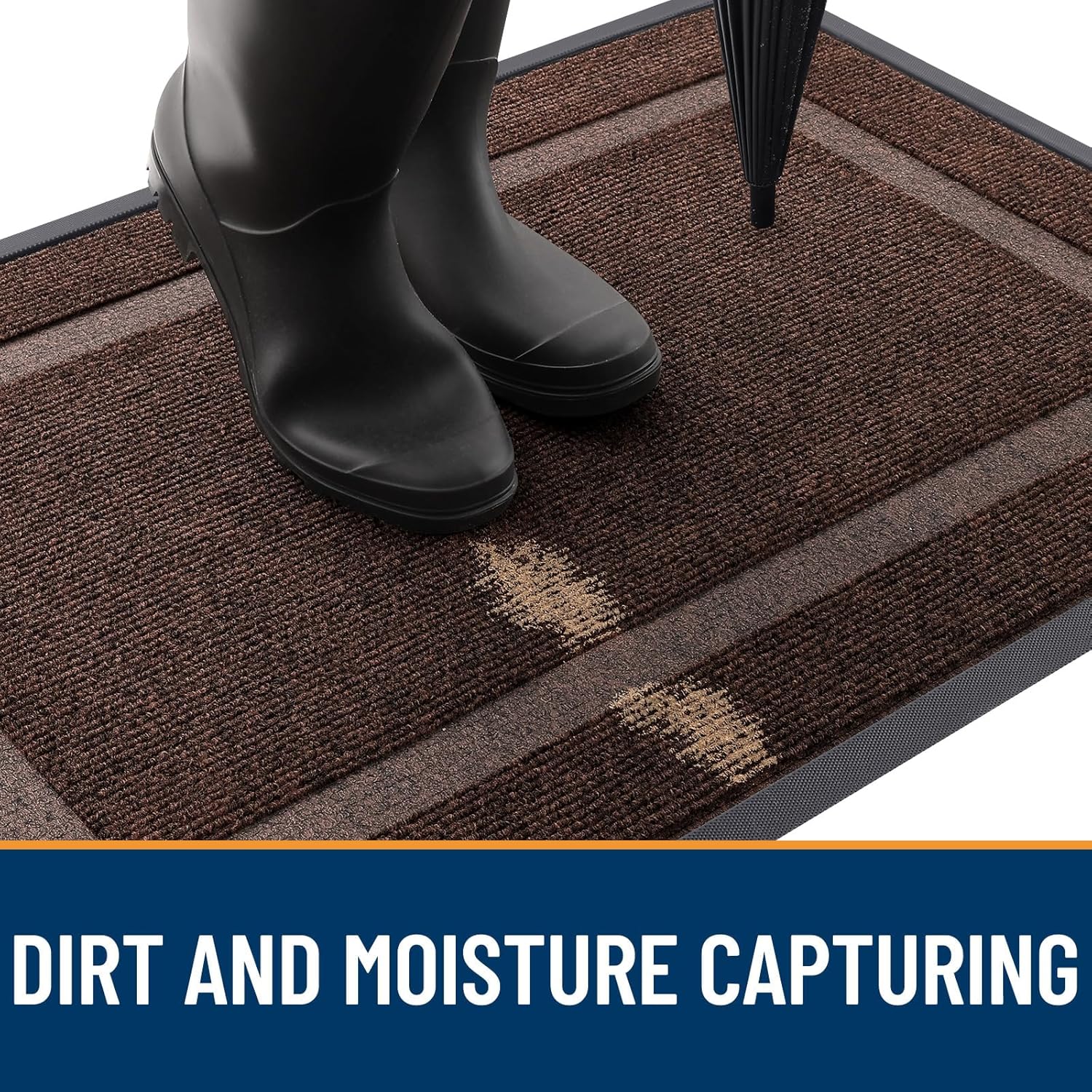 OLANLY Front Door Mat Indoor Outdoor Entrance, Waterproof All-Season, All-Weather Doormat, Sturdy Natural Rubber, Fade Resistant, Low Profile, Easy Clean Patio Porch Entryway Mat, 47x23, Dark Brown