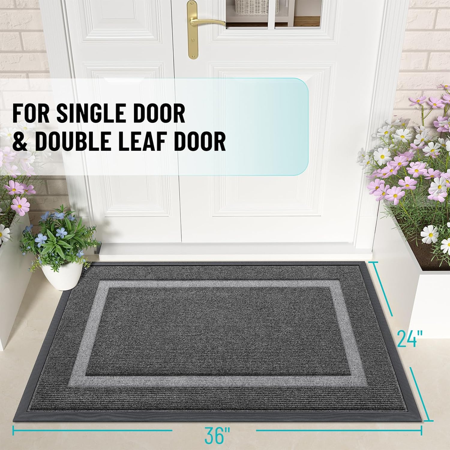 - [VERSATILE USE] OLANLY's welcome mats seamlessly blend style and practicality, perfect for indoor spaces like homes, living areas, lobbies, and offices, ensuring cleanliness. Equally suited for outdoor use, these mats excel in high-traffic areas such as front doors, sidewalks, terraces, garages, barns, and driveways. Crafted from tough materials, they are both heavy-duty and soft, offering flexibility.