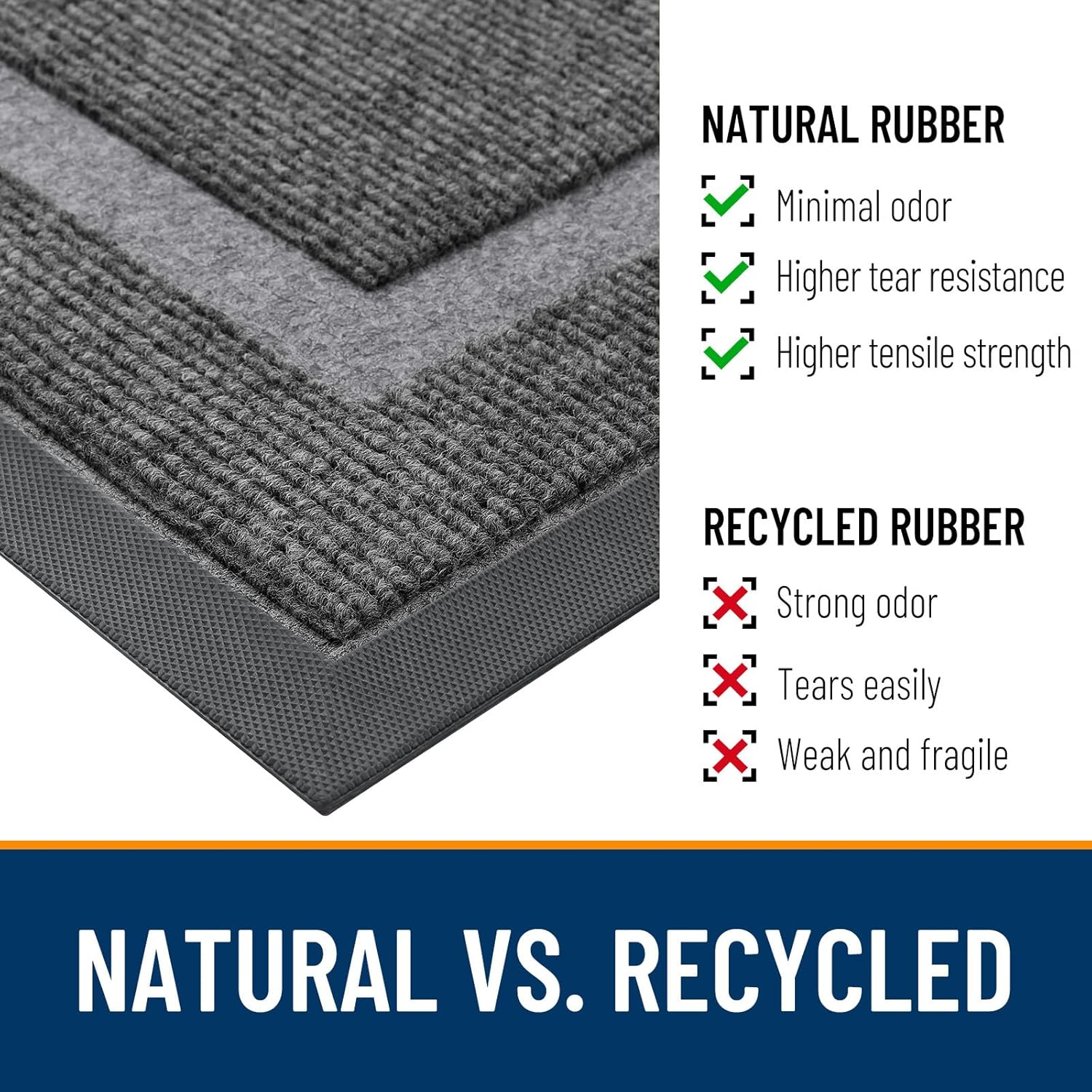- [STURDY NATURAL RUBBER BACKING] The OLANLY heavy-duty door mat features an ultra-thin design, allowing it to effortlessly glide under most doors without jamming or curling. Crafted with a sturdy natural rubber backing, our product offers higher tensile strength, increased tear resistance, and less odor compared to synthetic rubber.