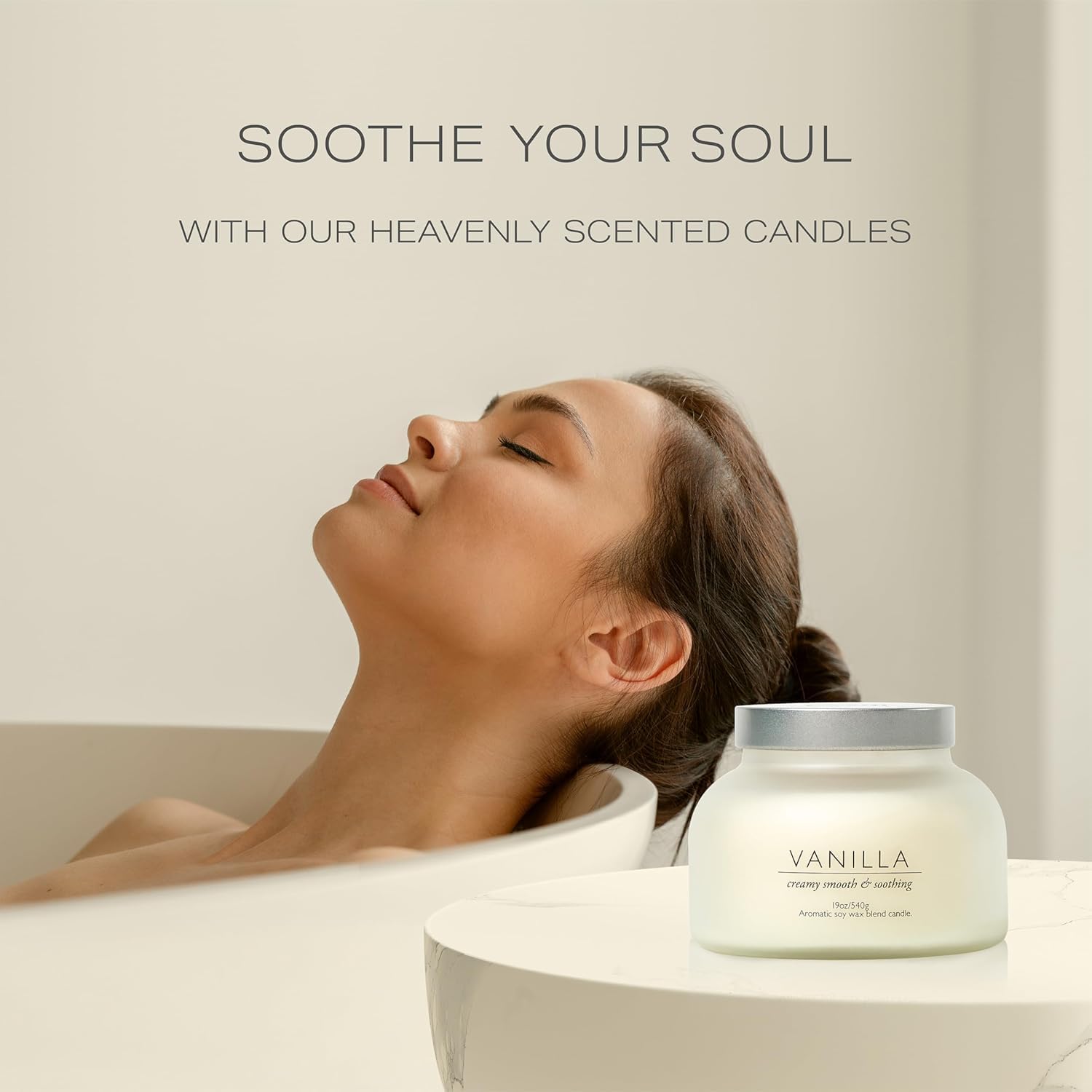- Long-Lasting 19 oz Soy Candle for Home Our large soy candle features a clean-burning soy wax blend that provides up to 80 hours of fragrance. Ideal for daily use, this vanilla-scented candle offers a long-lasting scent experience without being overpowering.