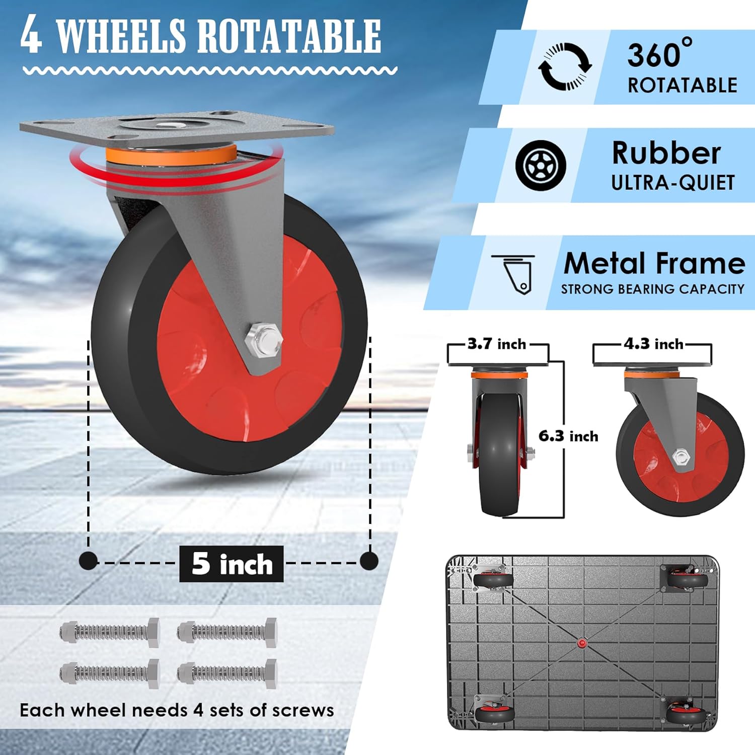 - 【Equipped with 4 swivel wheels】 4 safe 5 inch heavy wheels can provide 4 stress points, and the load capacity is stronger. The 4 plastic wheels are designed with 360-degree swivel functionality, compared to the other 4 rounds of cars, there are only 2 360-degree rotation wheels, our 4-wheeled cars are easier to turn during transport. TPR wheels minimize aggressive noise