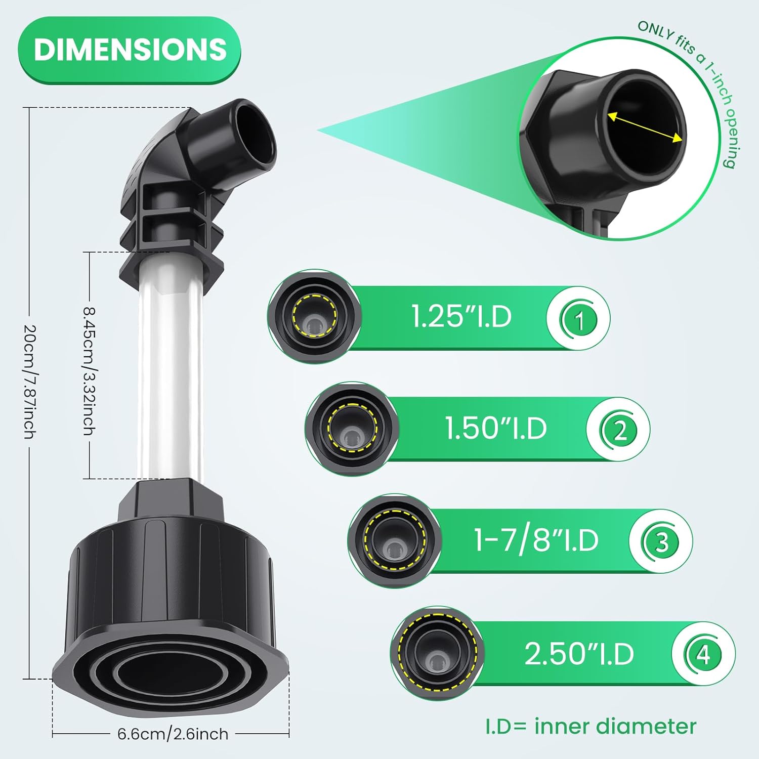 - Check Before You Buy: This useful patent pending Homeslea's universal base is designed to fit multiple wet vac hose sizes,Black elbow ONLY fits a 1-inch opening and is ribbed for easy grip. Please make sure your drain line has a 1-inch opening before ordering