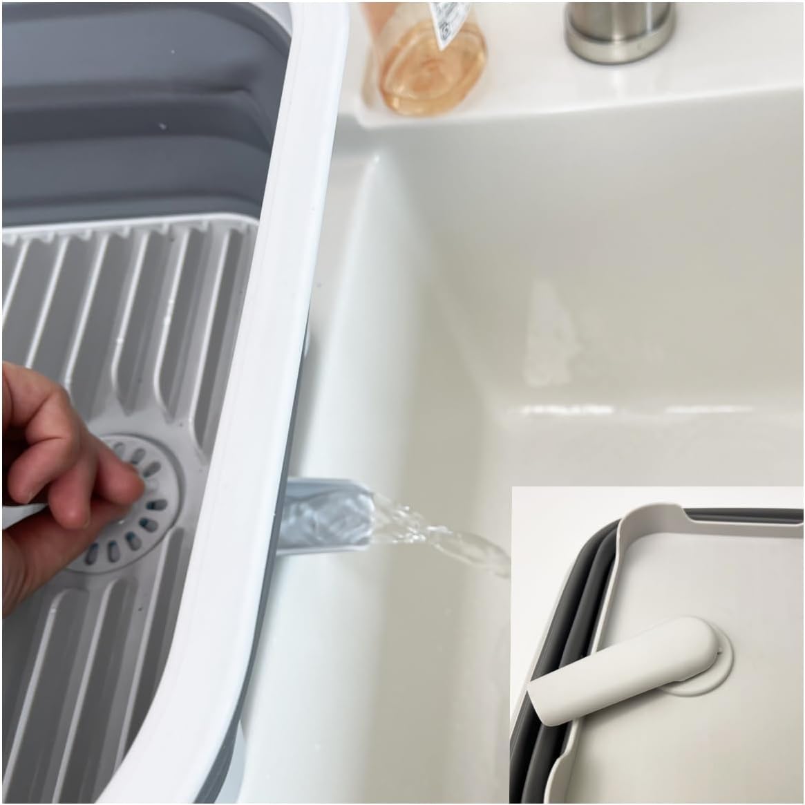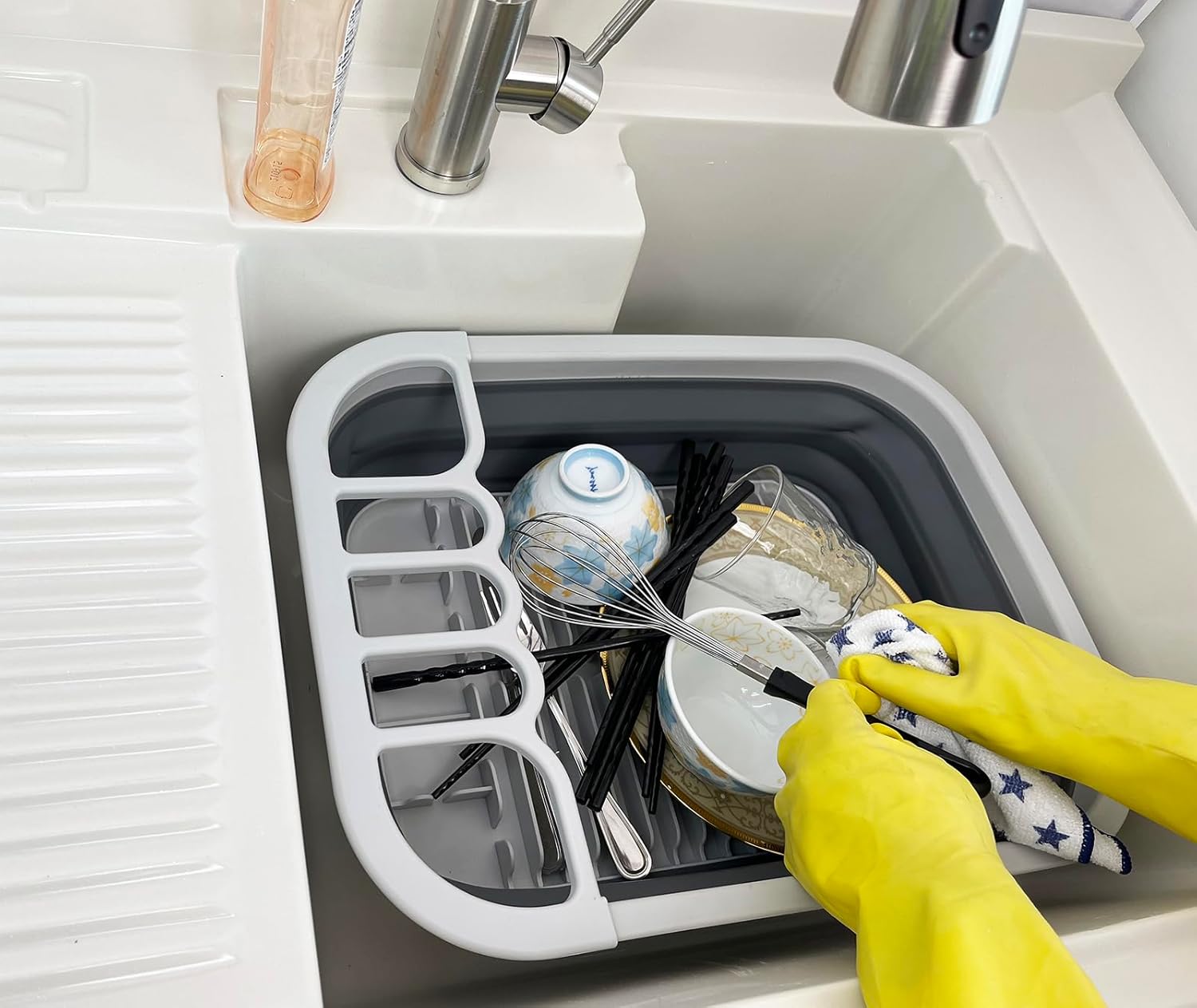 SAMMART 12L (3.17 Gallon) Collapsible Dish Drainer with Swivel spout - Foldable Drying Rack Set - Portable Dinnerware Organizer - Space Saving Kitchen Storage Tray (Grey/Steel Grey)