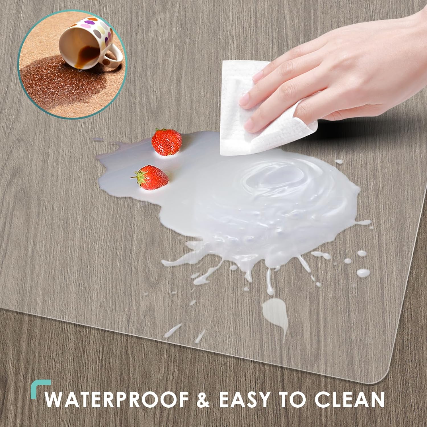 - Waterproof & Easy to Clean : Made from PVC material, this computer gaming chair mat is waterproof, so you don't have to worry about spilled coffee or food scraps falling on the floor. Meanwhile, this office chair floor mat is easy to clean, A quick wipe with a damp cloth is all it takes to maintain its cleanliness.