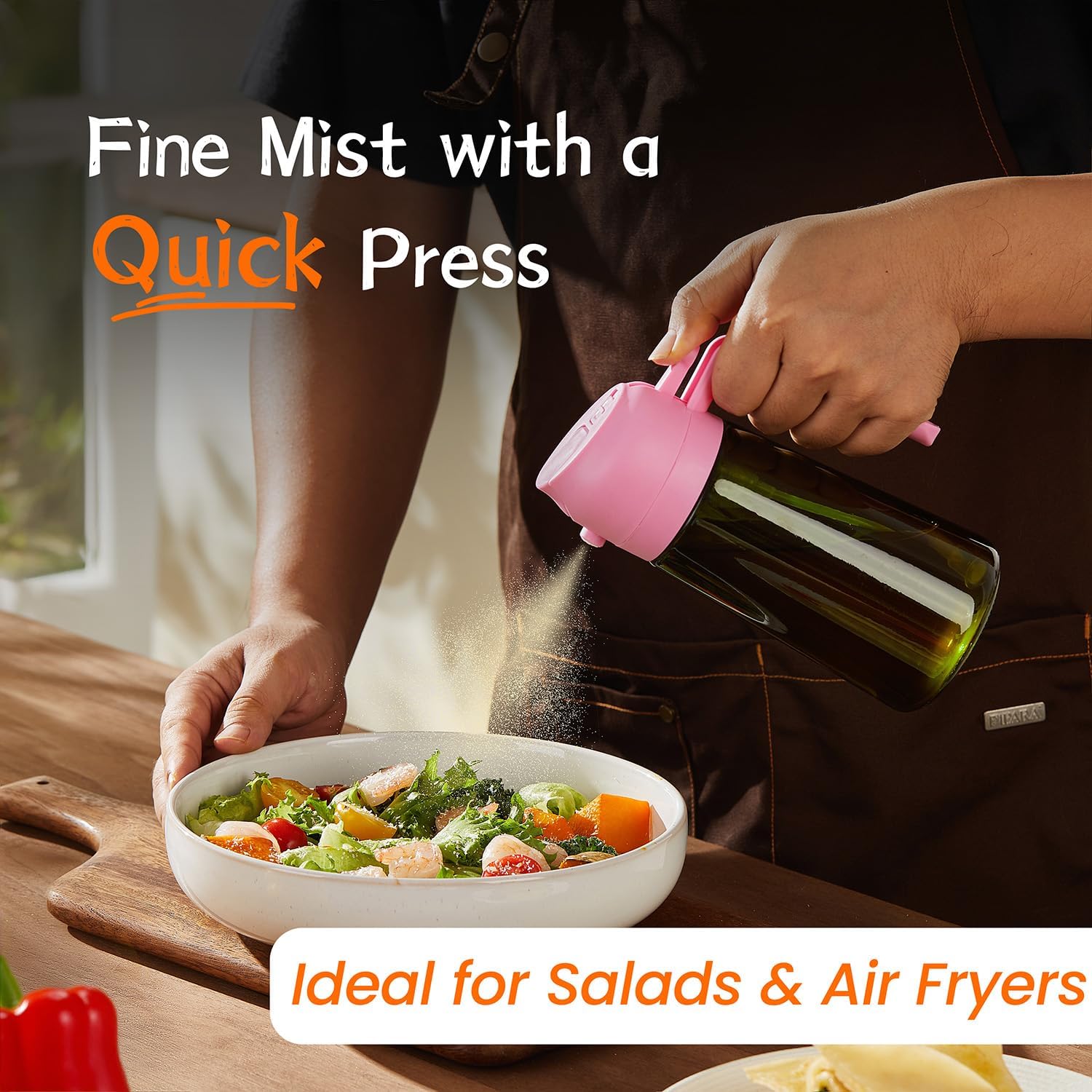 - Versatile Kitchen Tool: Combining the convenience of pouring and spraying in one bottle, this multifunctional design streamlines your cooking process. Whether you need a precise cooking spray for air frying or a controlled pour for stir-fries, it’s a practical addition to your kitchen appliances, keeping your kitchen clean and efficient