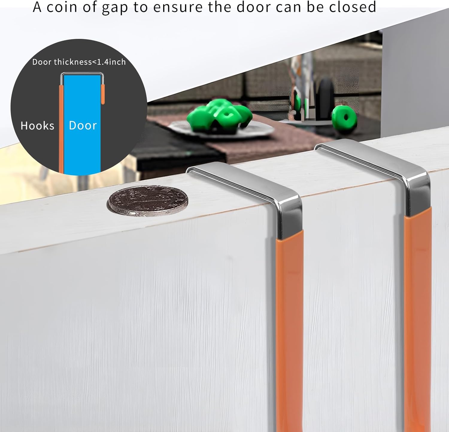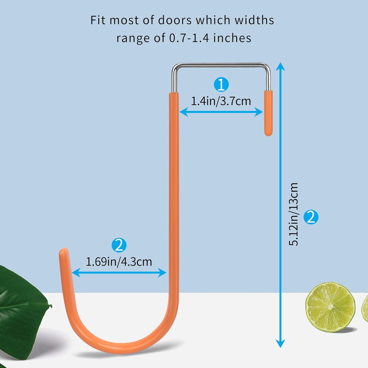 FYY Over The Door Hooks, 4 Pack Door Hangers Hooks with Rubber Prevent Scratches Heavy Duty Organizer Hooks for Living Room, Bathroom, Bedroom, Kitchen Hanging Clothes Towels Hats Coats Bags Orange
