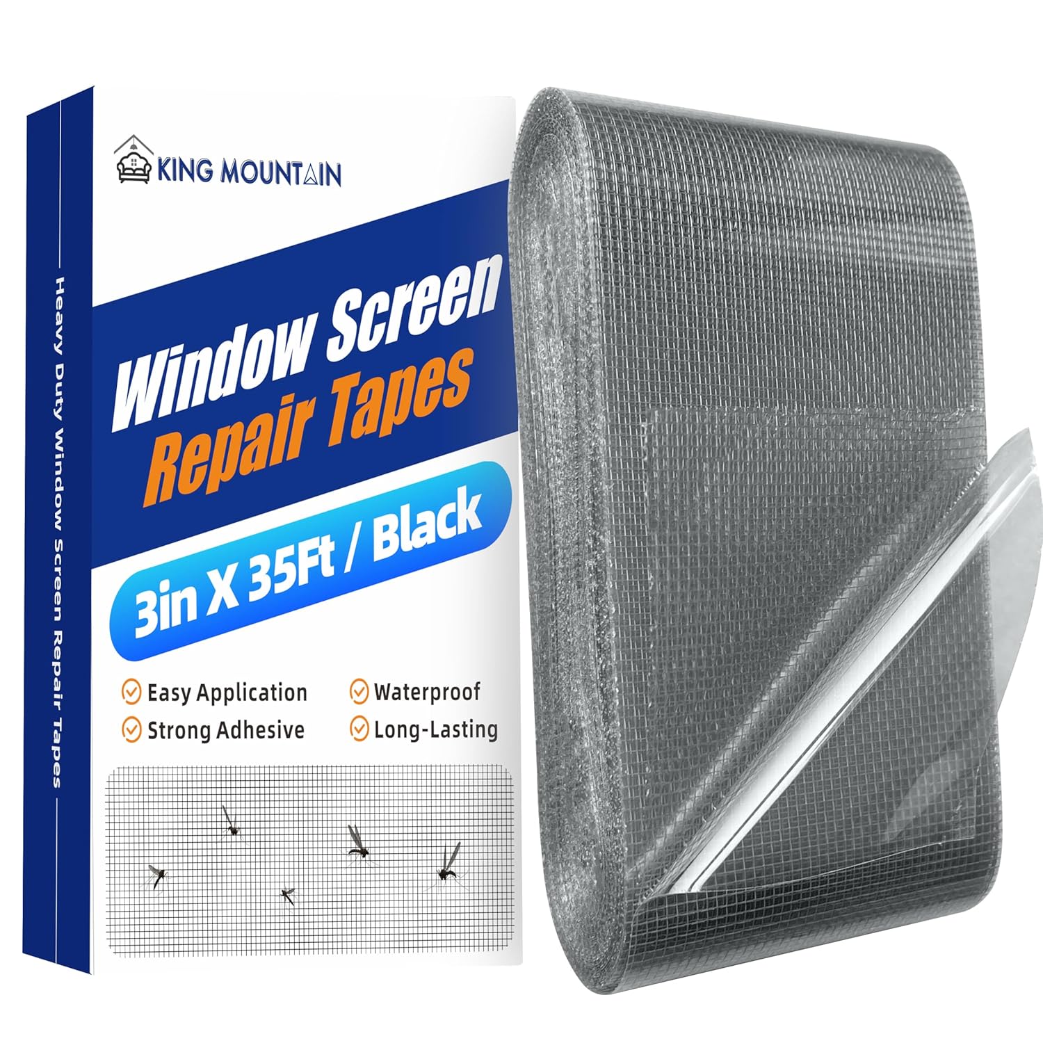 - 【 COST-EFFECTIVE KIT 】The KING MOUNTAIN screen repair tape measures 3 in x 35 FT, providing a wider tape to repair larger tears and holes, and allowing you to get creative with any pattern you desire. Perfect repairs without the need to spend extra money replacing the entire window screen
