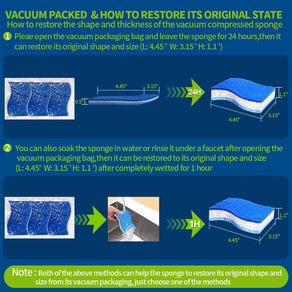 - 【Intimate service and Save your money】If you aren’t completely satisfied with these cellulose sponge, Please contact us via the email(Pucity-service@hotmail.com). Note: As it is vacuum packed, please place it in a vacuum bag for 24 hours or soak the sponge directly in water for 1 hour after receiving it. It will return to its original shape and size(L: 4.45' W: 3.15'THK: 1.1')