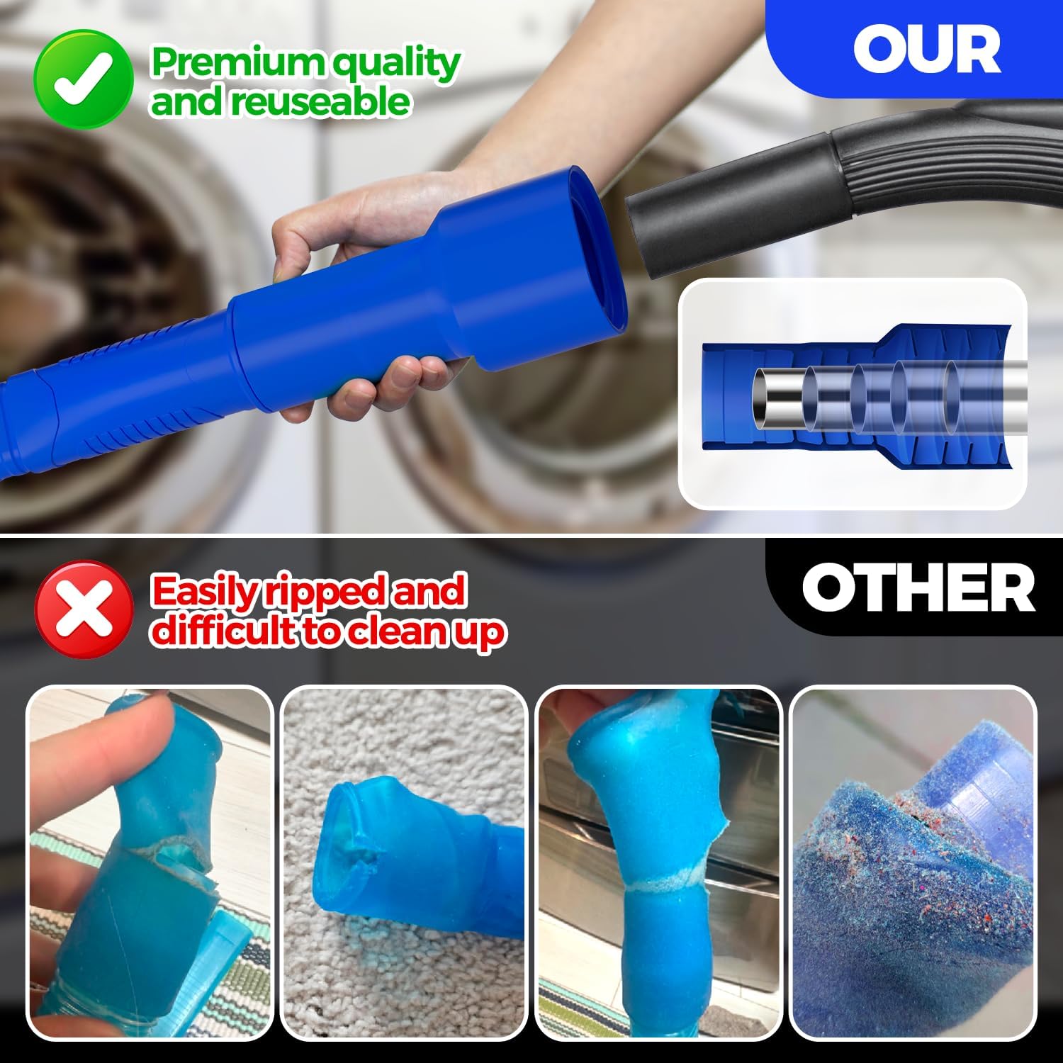 Holikme 2 Pieces Dryer Vent Cleaner Kit, Dryer Lint Vacuum Attachment and Flexible Dryer Lint Brush, Dryer Vent Vacuum Hose Attachment,Dark Blue