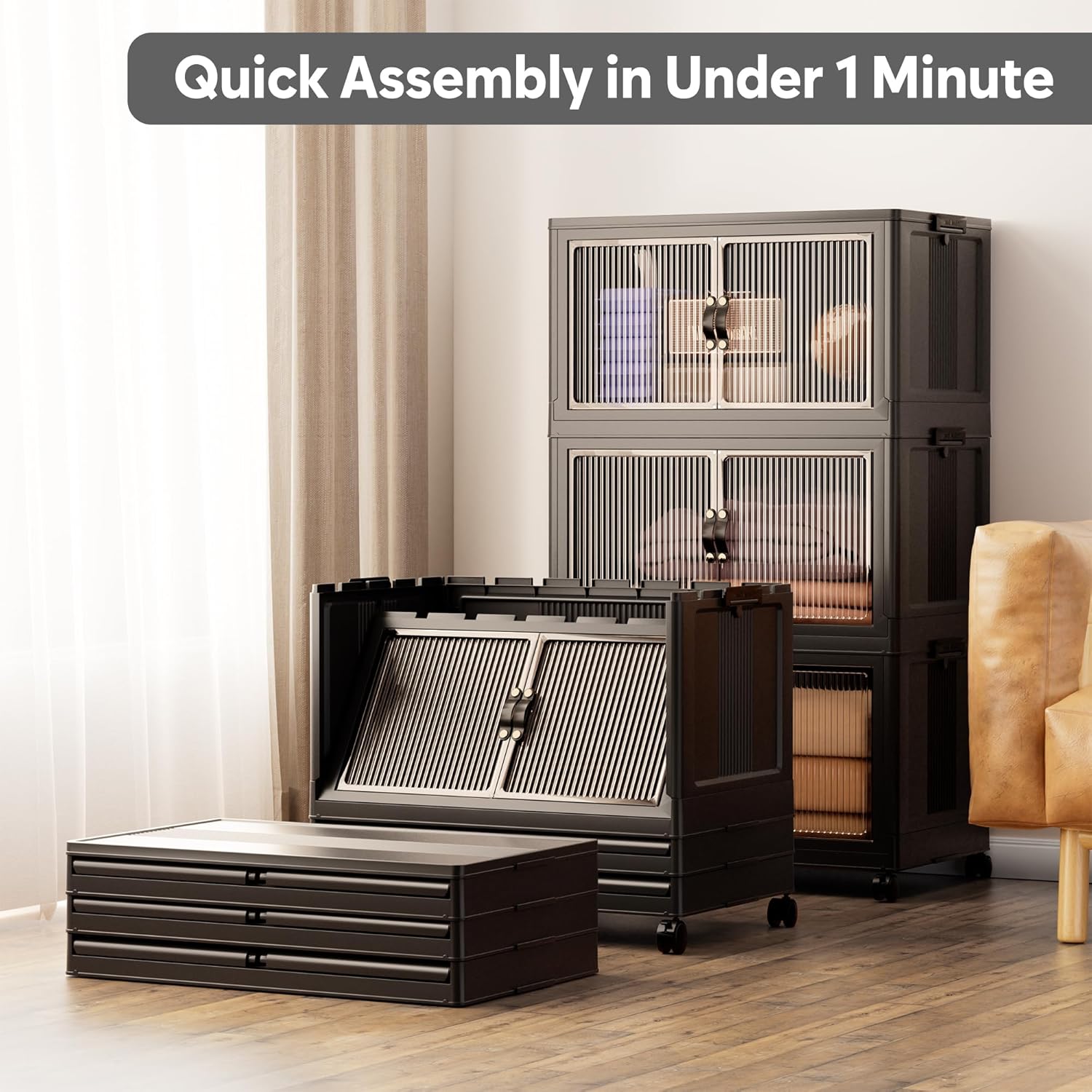 - 【Magnetic Doors & Rotating Wheels】The bins offer two opening options: front or top. The magnetic closure allows easy access. The 4 rotating 360-degree wheels make them easy to move, ideal for use in storage containers and closet organization in any room like your closet or bathroom.