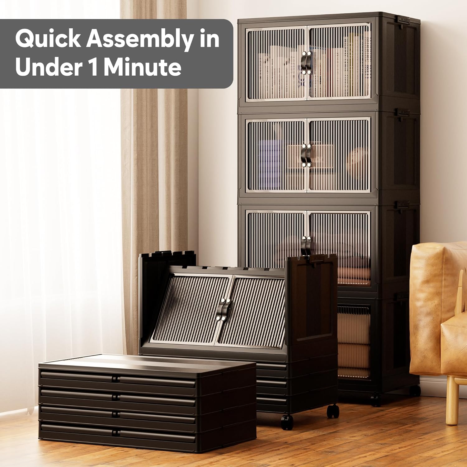 - 【Magnetic Doors & Rotating Wheels】The bins offer two opening options: front or top. The magnetic closure allows easy access. The 4 wheels make them easy to move, ideal for use in storage and organization in any room like your closet or bathroom.
