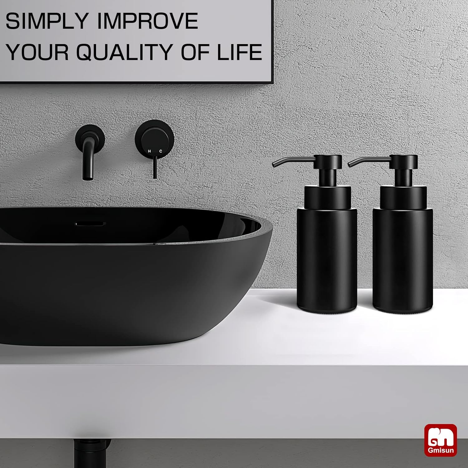 GMISUN Foaming Soap Dispenser, 10 Fl oz/300 ml Matte Black Glass Foaming Hand Soap Dispenser, 2Pcs Hand Soap Dispensers for Bathroom & Kitchen, Refillable Foam Soap Pump Bottle with Waterproof Labels