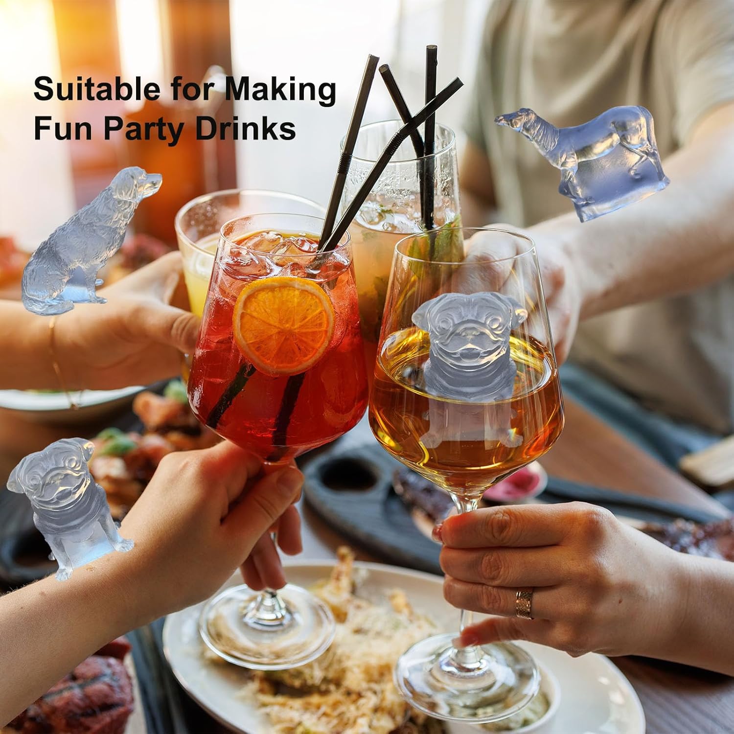 - Fun Pug Dog Shaped Ice Cube Mold -- Pug Dog Ice Cube Mold can make unique Pug Dog shaped ice cubes; it has a large size and is designed for whiskey glasses, which is very suitable for drinks that need to melt slowly, such as whiskey, cocktails, bourbon, rum, tequila, gin, etc.