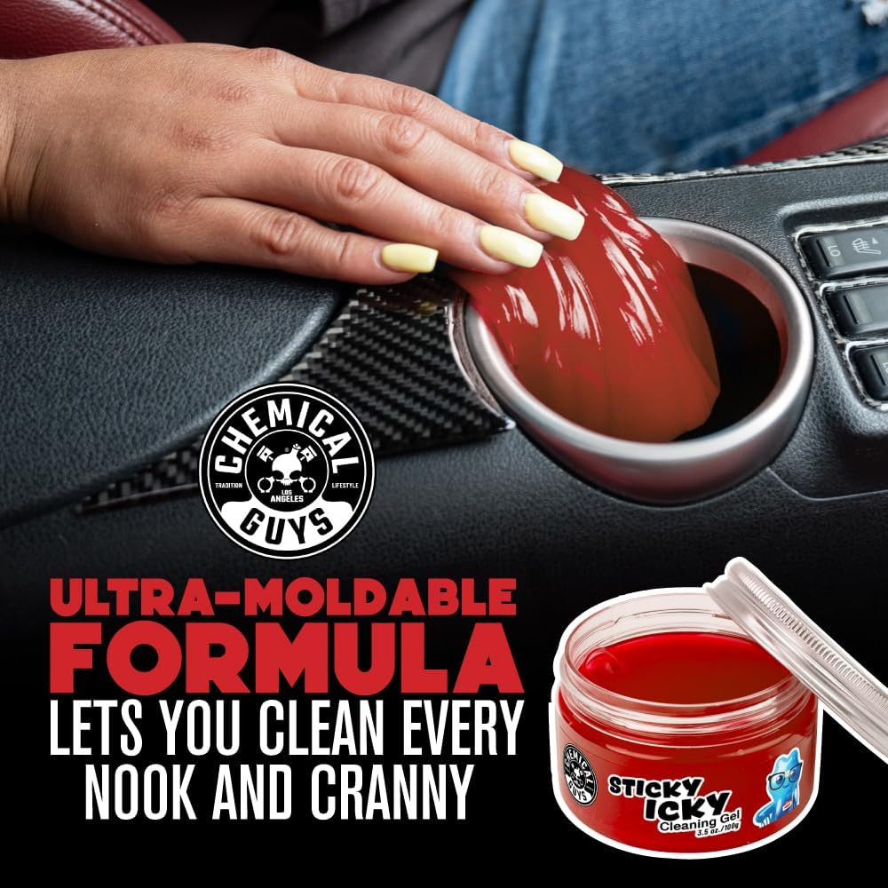 - GENTLE BUT TOUGH - Get those annoying crumbs out of your console, get into those hard to reach cracks that have been bugging you; Sticky Icky can get it out and is a high-tech cleaning compound which is gentle on your carβs interior.