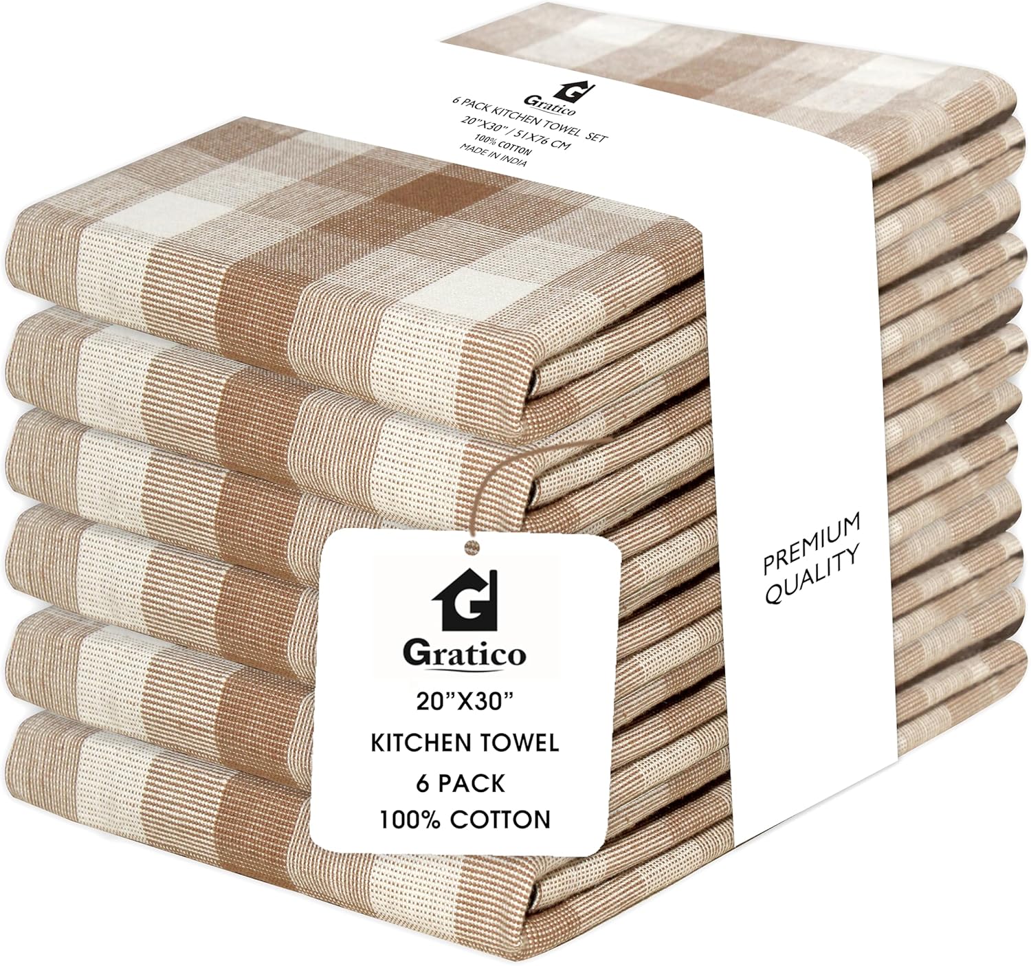 - SOFT AND SAFE: Crafted with 100% premium-quality cotton. Gratico Kitchen Towels & Dishcloths are very soft, absorbent, odor free and safe for all skin Types. Lint free, min shrink, quick dry with hanging loops and no color fade after multiple wash, Its perfect for everyday use.