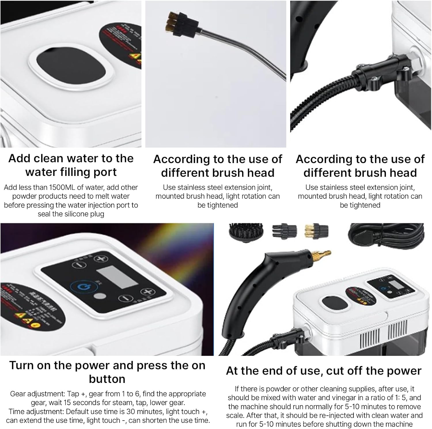 - 【Large Capacity】Portable steam cleaner with large water inlet and large water tank of 1200ml/40.5fl.oz capacity, which allows you to focus on cleaning, instead of refilling often.