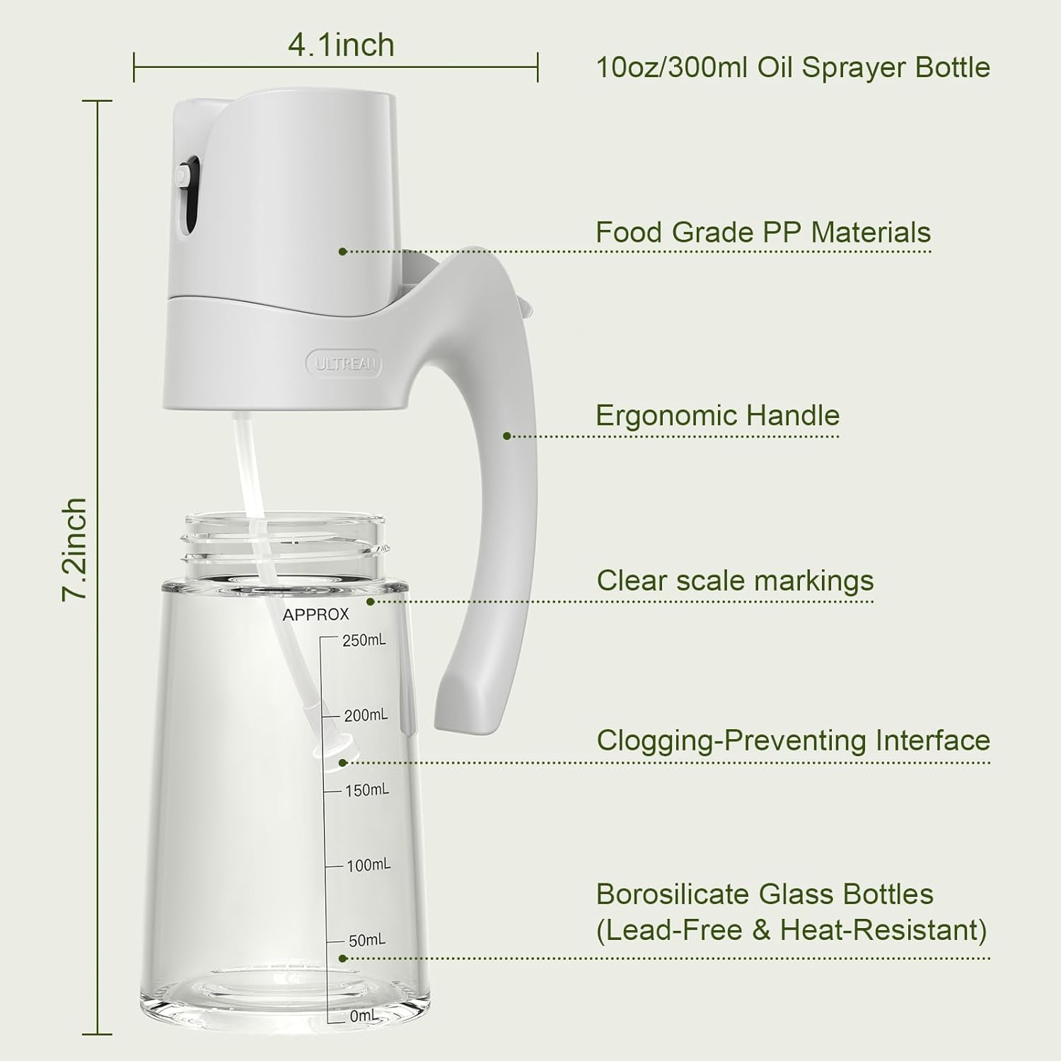 Ultrean Oil Sprayer for Cooking, 10oz/300ml Olive Oil Dispenser Bottle for Kitchen, Food-grade Glass Oil Bottle for Air Fryer, BBQ, Salad