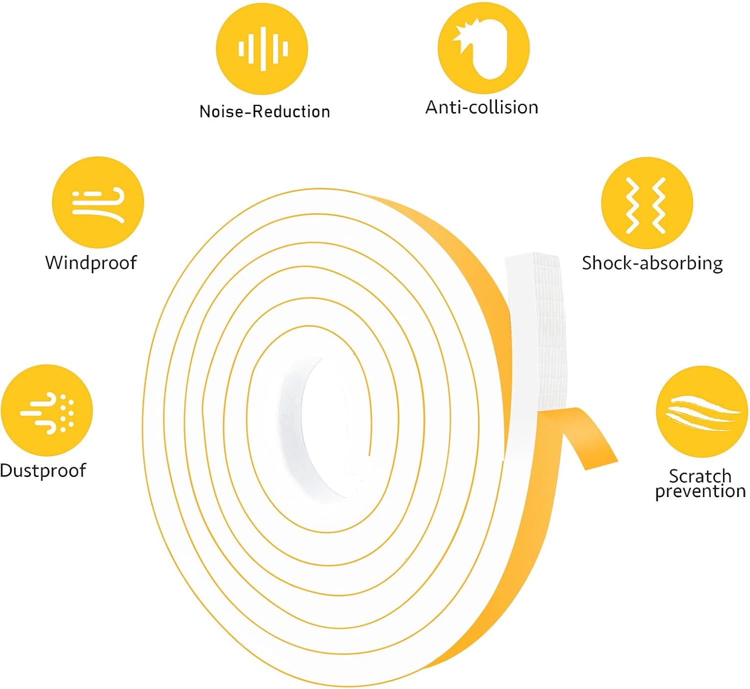 - 🟠SAVE ON ENERGY BILLS- Sealing gaps with this weather insulation strip helps to reduce energy consumption by keeping your room cool in summer and warm in winter, thus reducing electricity bills. You get one roll of doors windows AC insulation foam seal strip with 10 ft in total in each package, providing enough material for multiple seals. And it's easy to install and apply without extra tools, just simply peel and stick it on for a tight seal. It's a hassle-free and money-saving solution!