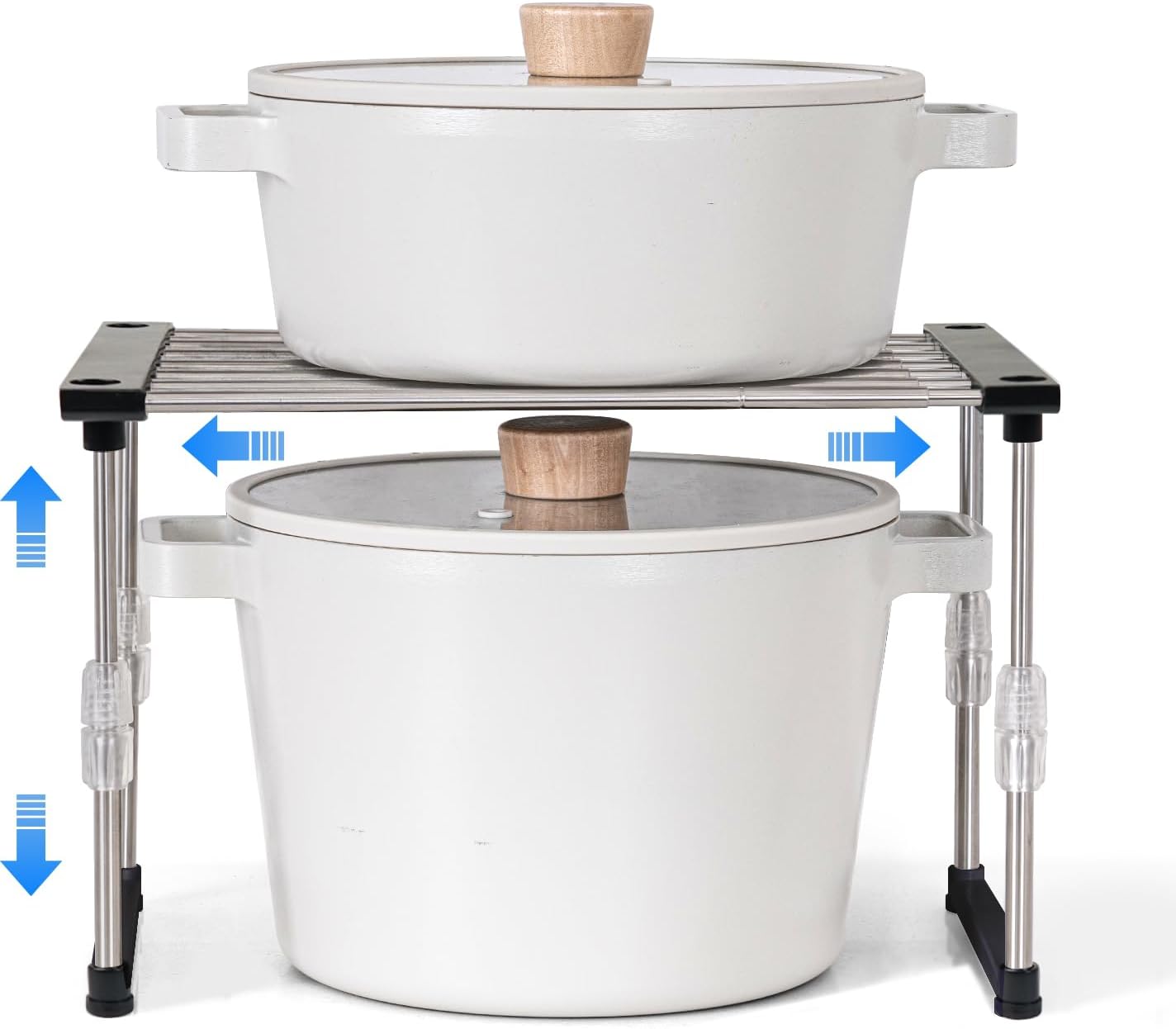 - **Customizable and Adjustable Design:** This versatile kitchen cabinet organizer allows you to tailor the width and height to fit your specific needs, providing a perfect solution for various cabinet spaces. Ideal for optimizing pantry organizers and storage, this shelf can easily accommodate different items.