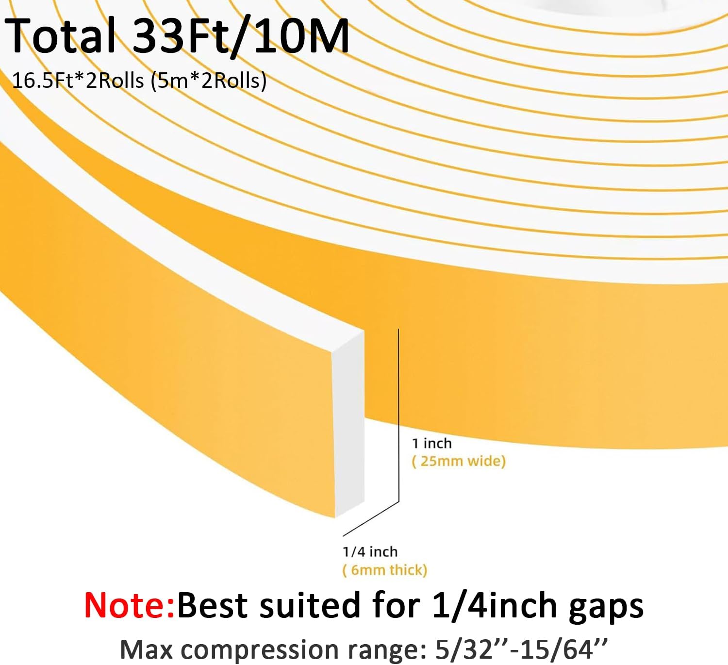Upgraded Strong Adhesive Foam Weather Stripping Door Seal Strip Insulation Tape for Insulating Door,Air Conditioner Noise-Reduction Self Adhesive Sealing Weatherstrip(1 in x 1/4 in x 16.5 Ft)