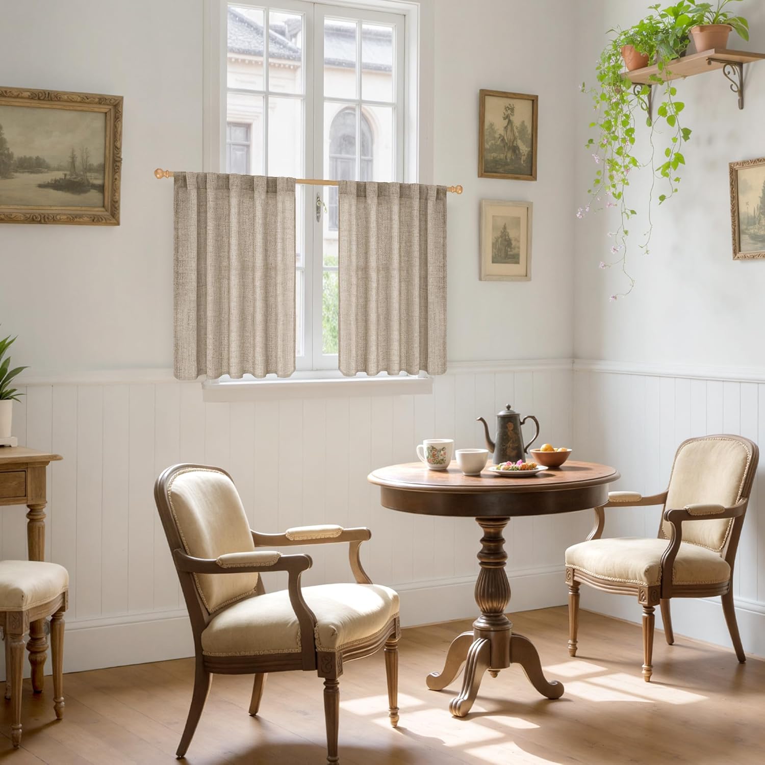- Package: The package includes set of 2 dark oatmeal linen curtain panels.Each linen curtain panel measures 42 Inch width by 36 Inch length with back tabs and rod pocket to accommodate your need to decorate your windows.