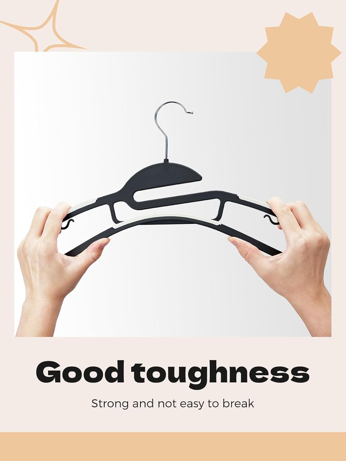 - Non slip Rubber Pads - Rubber pads on the shoulders and bottom bar of the plastic coat hangers can keep clothes securely in place, so you don't have to worry about the clothes slipping off and ending up on the ground. Our non slip hangers is a must-have for your closet!