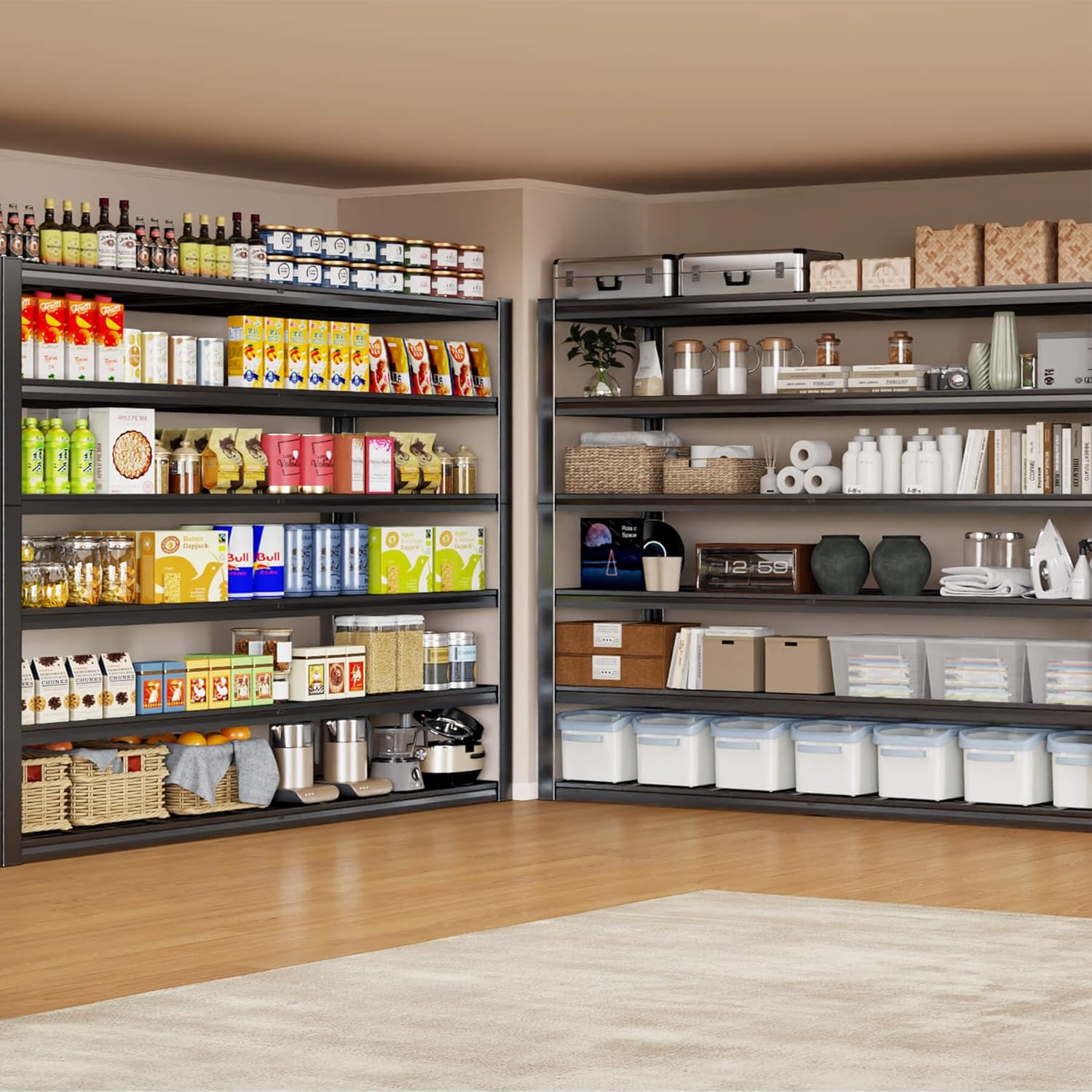 - ăEasy Assembly in 15 MinutesăHeavy duty metal shelves for garage storage feature a special nutless design for quick assembly. To help you assemble them quickly, we provide you with a hammer and a pair of gloves. You can quickly assemble it in just 15 minutes.