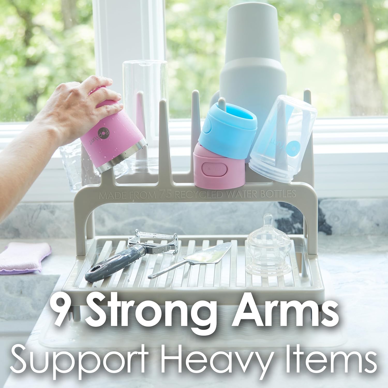 PopYum Glacier White Space Saving Drying Rack from 100% Recycled Bottles, countertop for Baby Bottles, Plastic Bags, Cups, Glass, tumblers, Compact