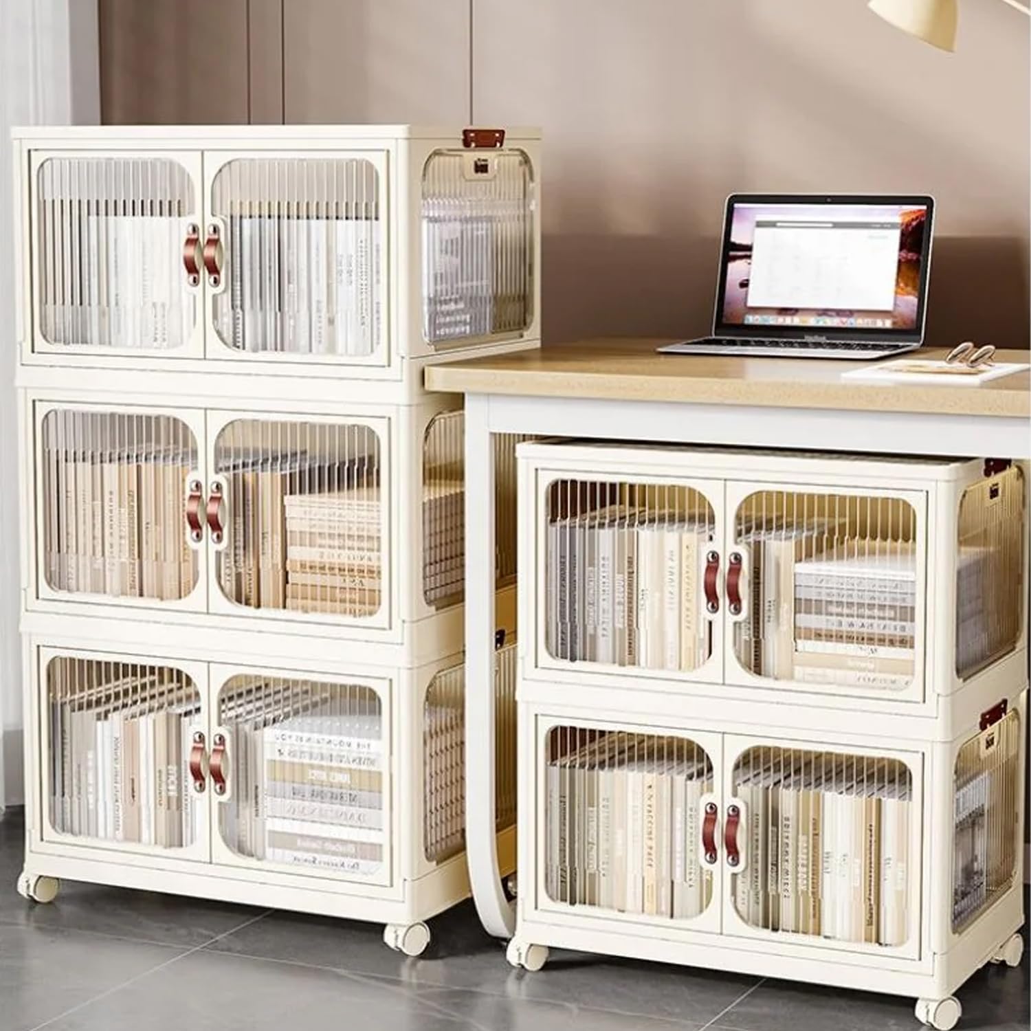 - 【Dual Access Design】 Experience convenience with storage bins that open two ways – via the top lid or the front door equipped with a magnetic latch to prevent accidental openings. The front door grants easy access to contents without disrupting the stack, shielding items from dust.