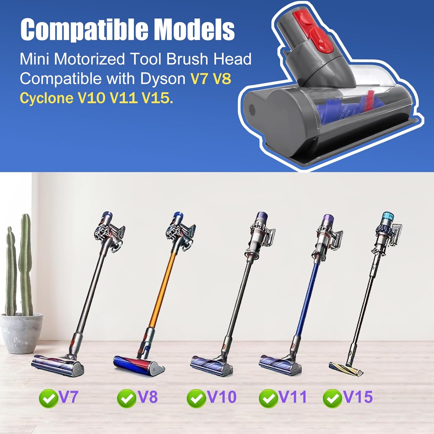 Mini Motorized Tool Brush Head Compatible with Dyson V7 V8 Cyclone V10 V11 V15 Anti-Tangle Pet Hair Attachment Replacement Parts Couth Mattress Upholstery Tool Head Suitable for Dog Hair and Pet Hair