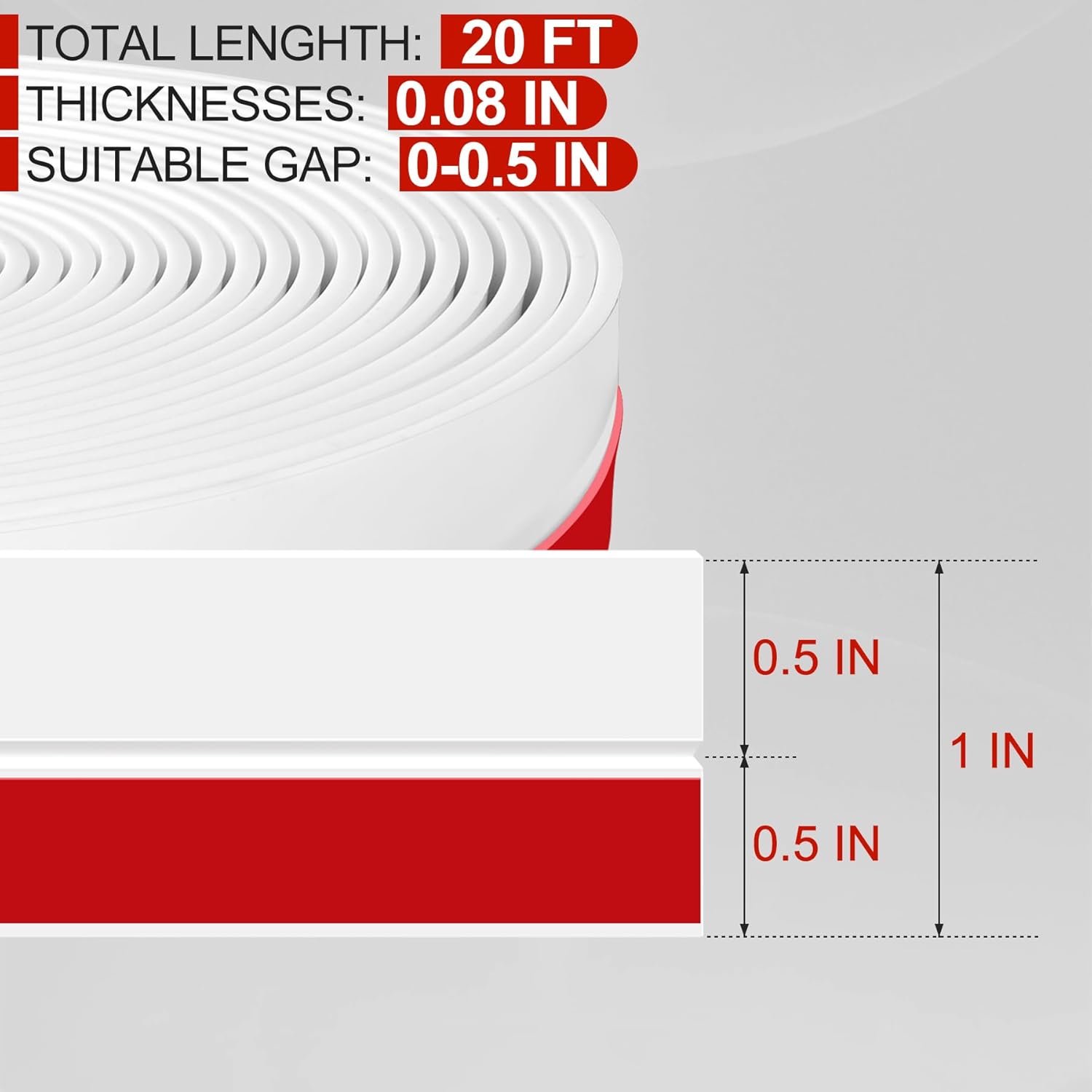 MYFAMIREA Door Weather Stripping 1IN (W) x 20FT (L) Door Draft Stopper Seal Tape Silicone Seal Strip Self Adhesive Shower Sweep Insulation Tape Side Bottom Strip for Sliding Glass Window Gap, White