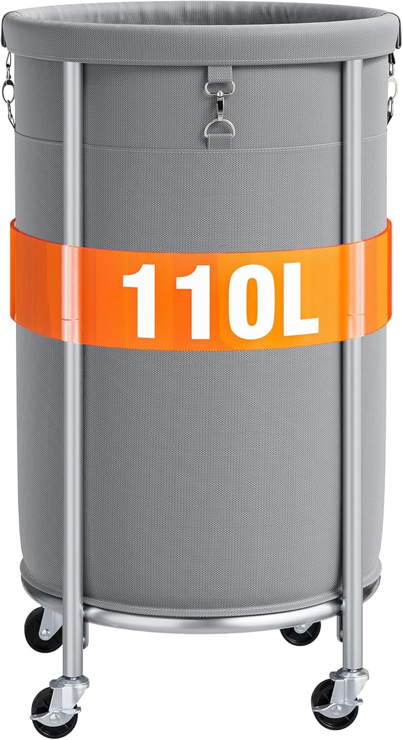 - Ample Storage Space: With a generous 110L capacity and size of 16.5โDia. x 30.3โH (including wheels), this laundry basket on wheels provides ample space for dirty clothes, sheets, towels, pillows, toys, and more. Enabling you to manage your laundry in a single trip