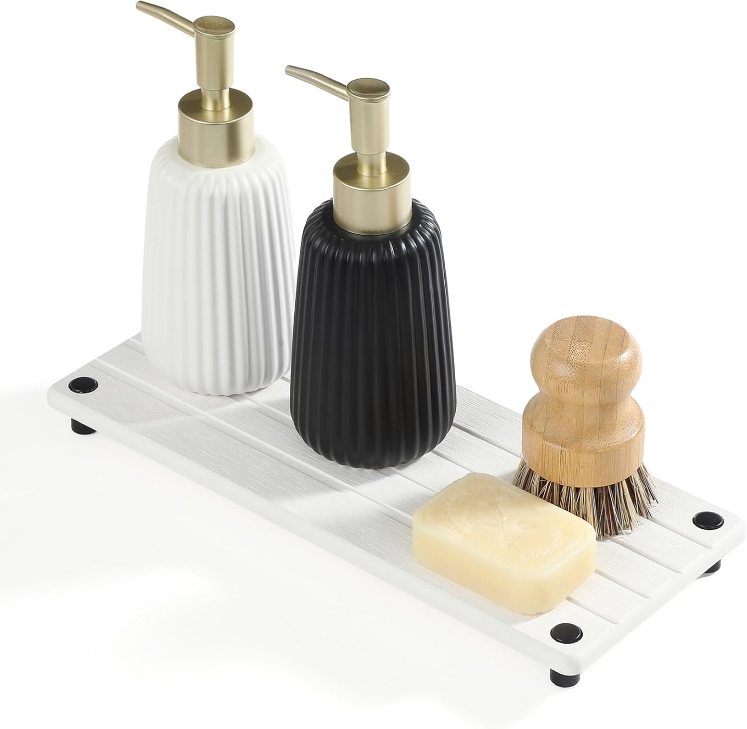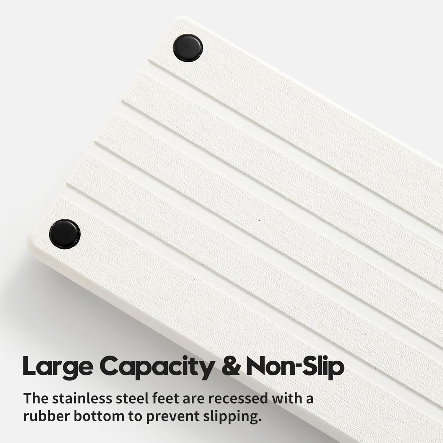 Instant Dry Sink Caddy Kitchen Sink Organizer, Quick Drying Stone Tray Diatomite Sponge Holder Soap Dish, Bathroom Countertop Fast Dry Water Absorbing Vanity Rack, White, 12" x 5"