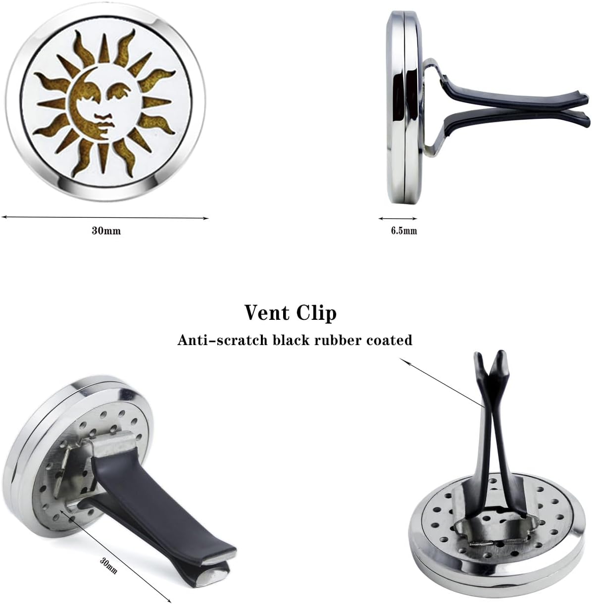 - 【Material 】High quality 316L stainless steel 30mm car diffuser vent clip, solid and smooth, anti-corrosion, easy to clean, we pair our diffuser car vent with reusable 10 color refill pads. Complete with a solid back and two magnets for a secure close, you’ll never have to worry about getting essential Oil all over your car.