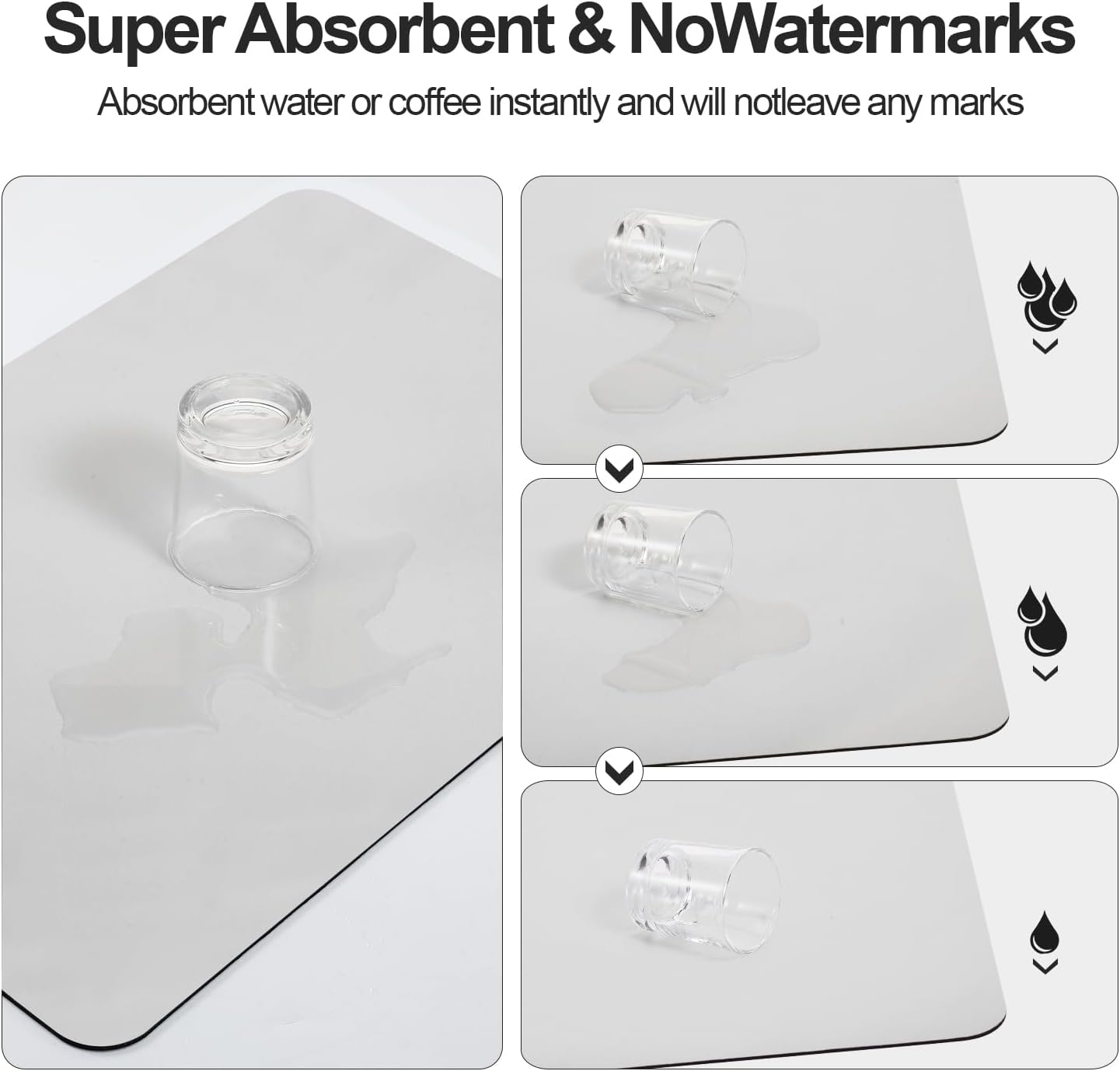 - 【Quick Absorption】 The soft diatomite dish drying mat instantly absorbs any liquid without staining your countertop.