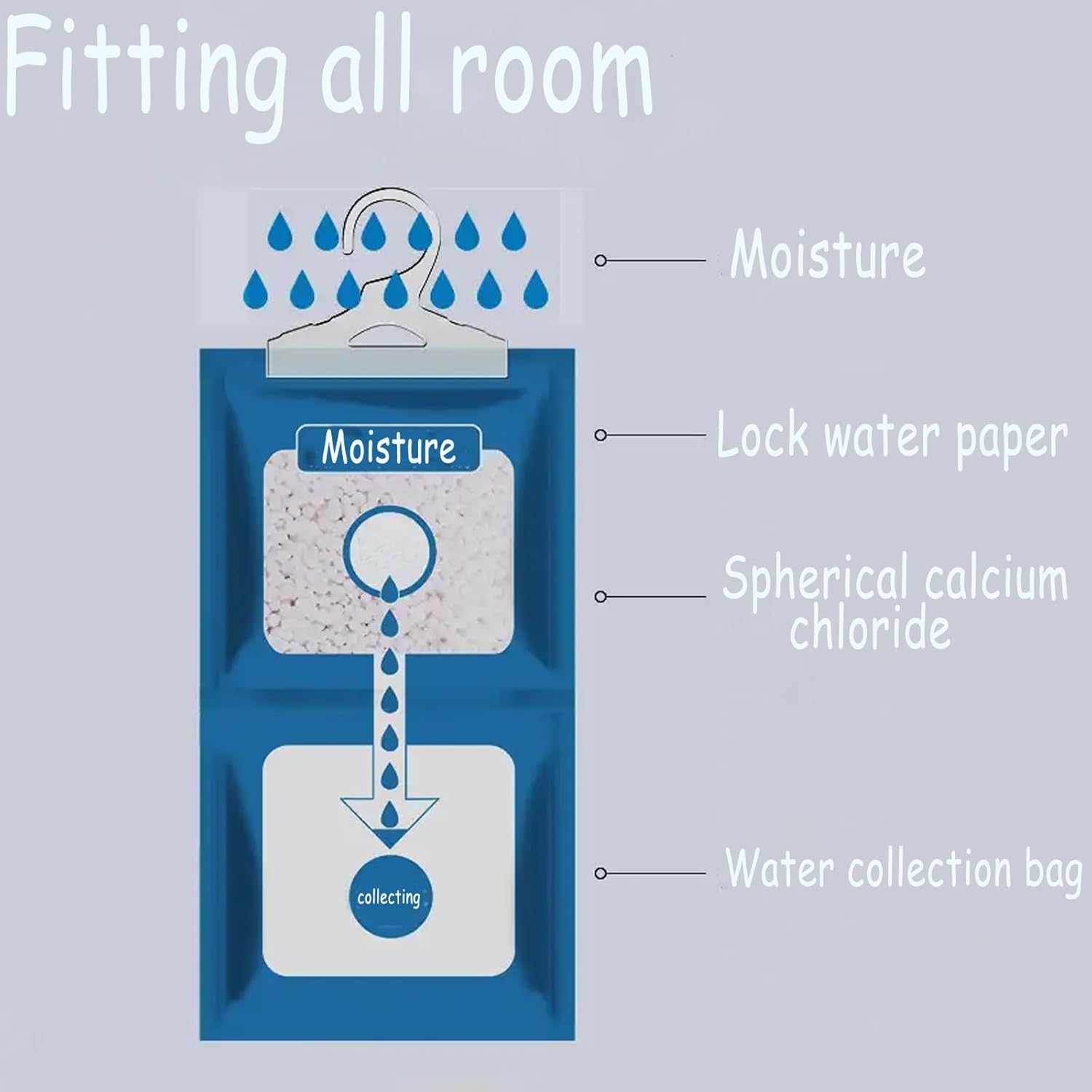 - Moisture absorber packets provide an easy solution to protecting items and fabrics from excess moisture.By Hanging them up,physical dehumidification creates a drier and more comfortable environment for you.