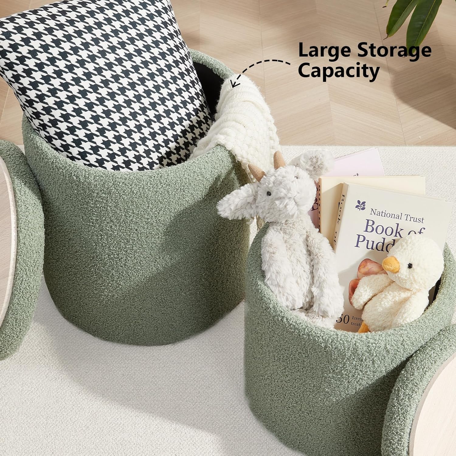 • 【Ample Storage Space】Both the large and small ottomans offer generous storage capacity. You can place them in the entryway to store shoes, in the living room for blankets and throw pillows, in the children's room to organize toys, or in the dressing room for cosmetics, bags, and other essentials.